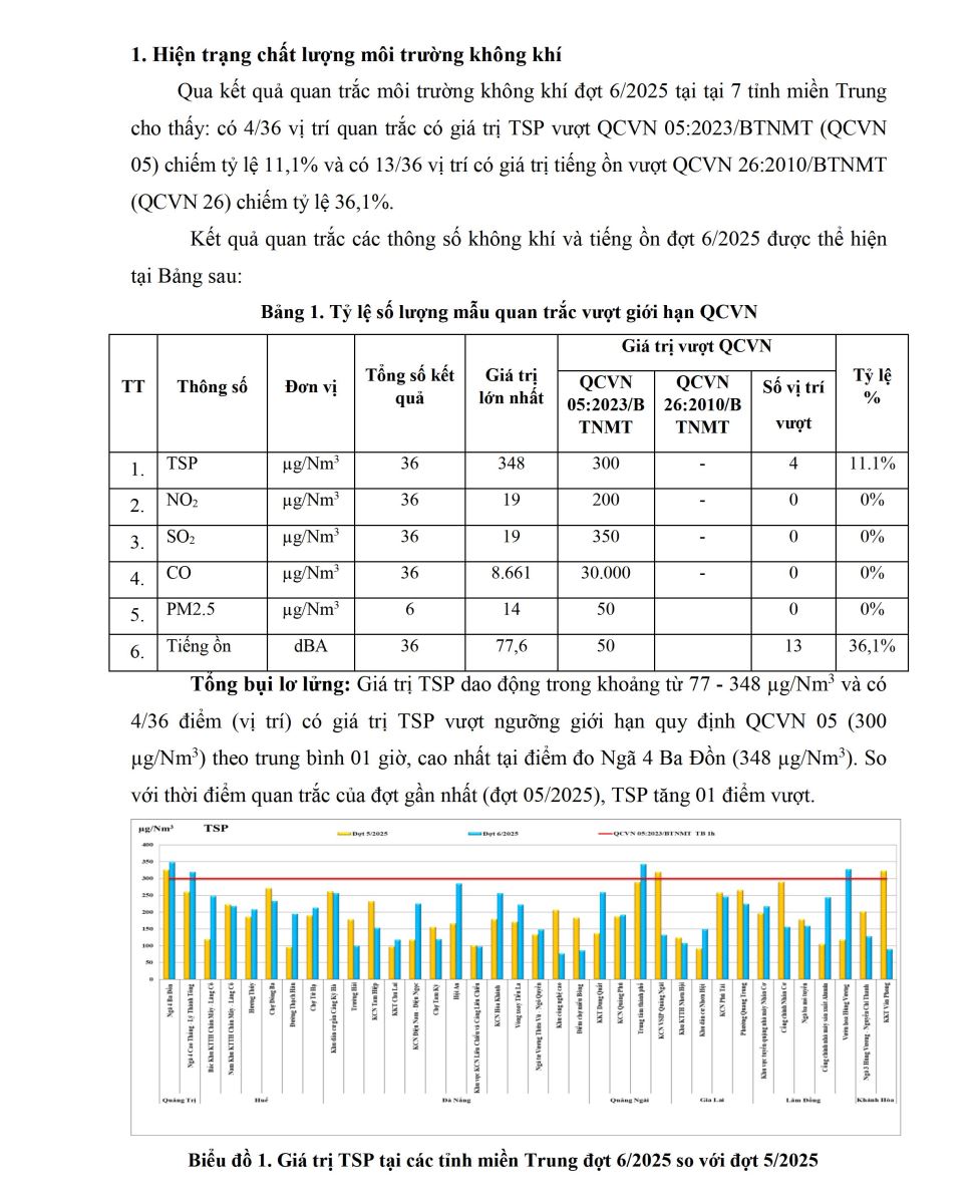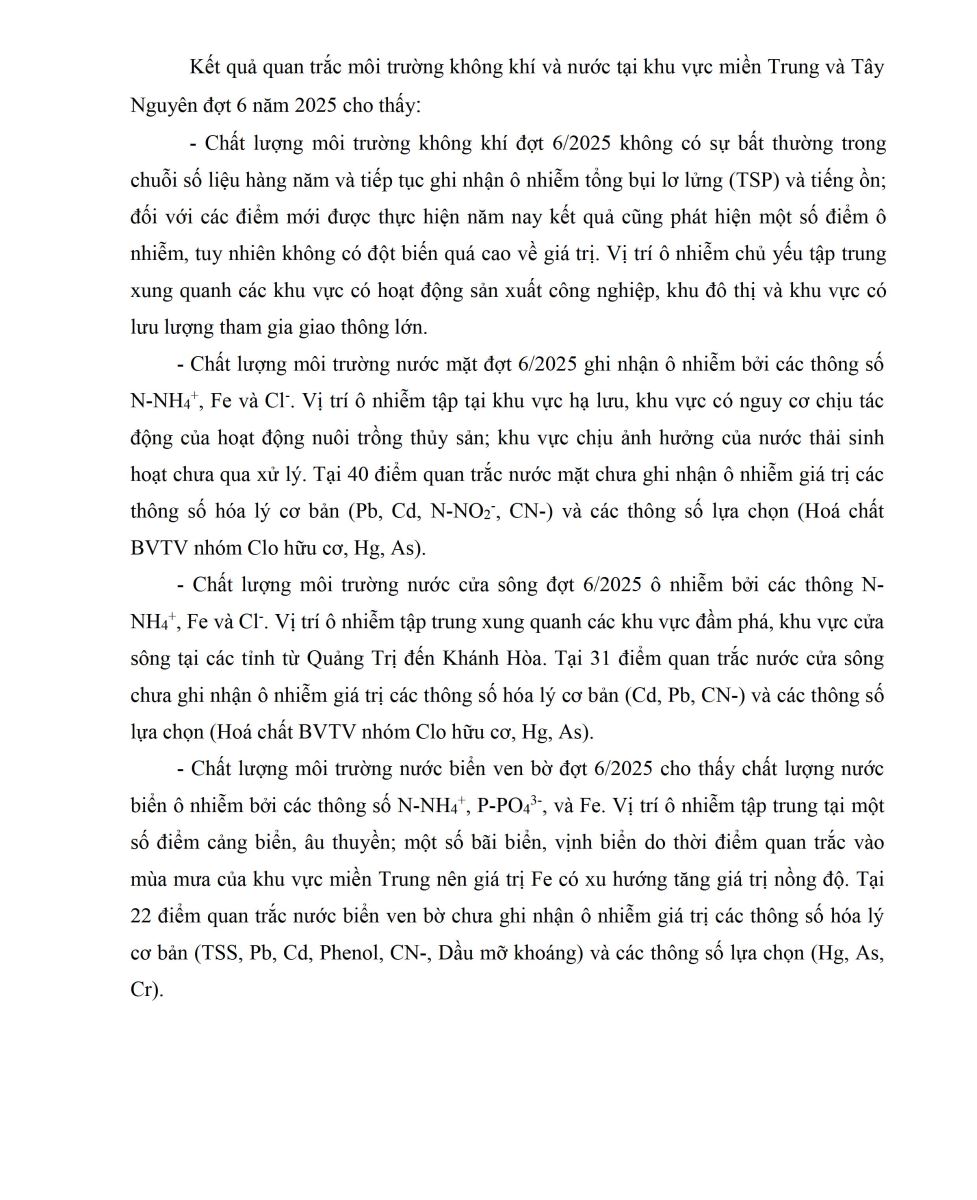 - CHẤT LƯỢNG MÔI TRƯỜNG TẠI KHU VỰC MIỀN TRUNG (Đợt 1, tháng 8/2025)