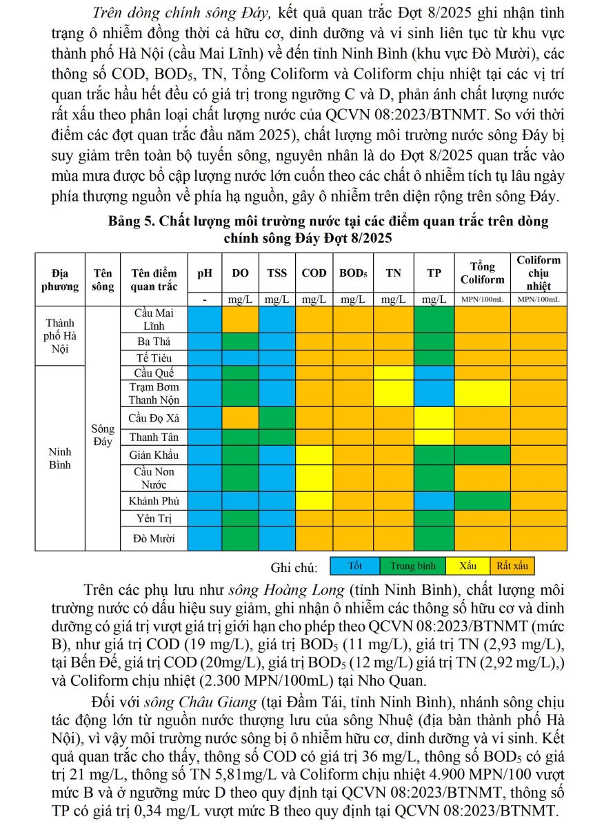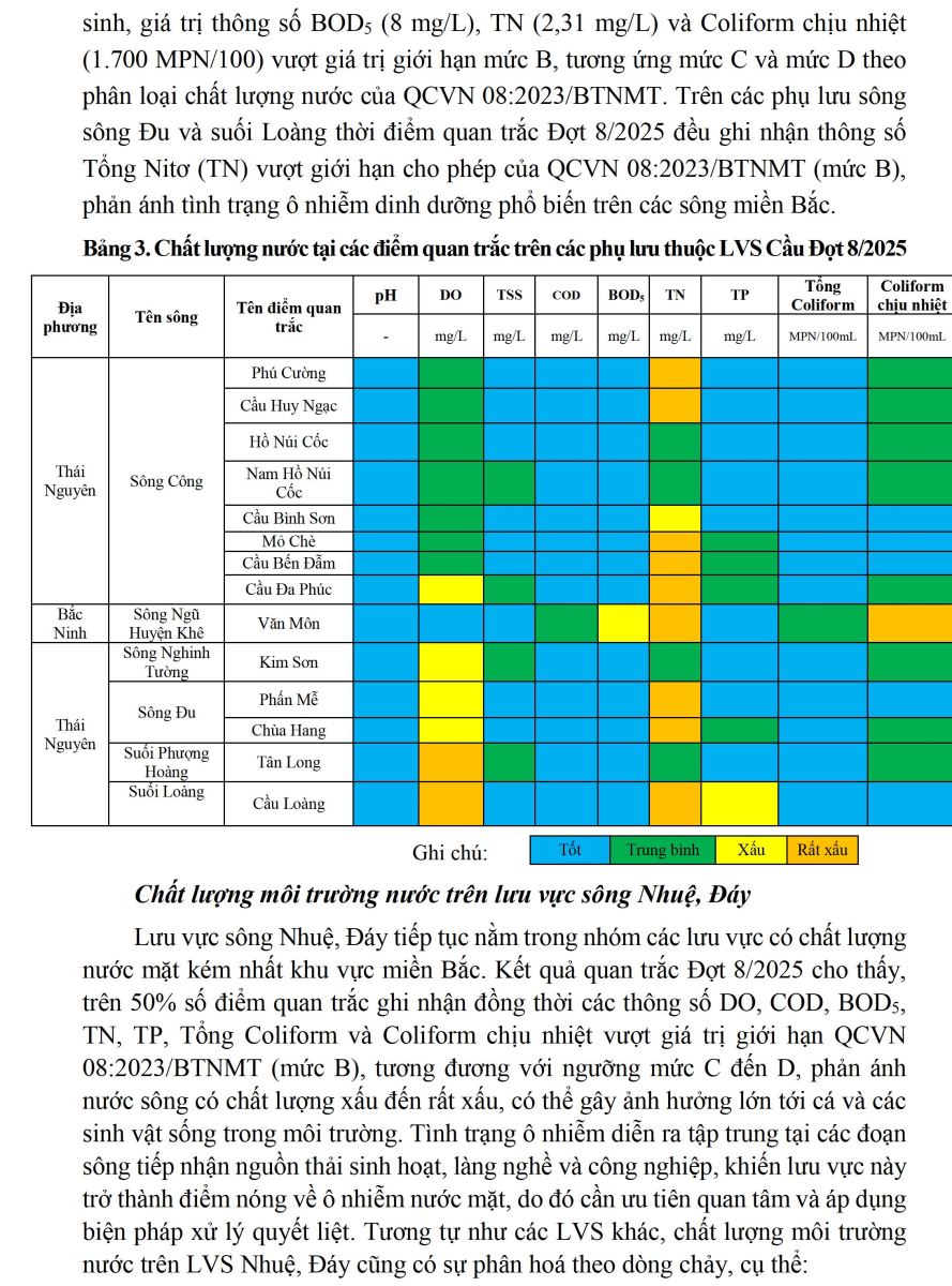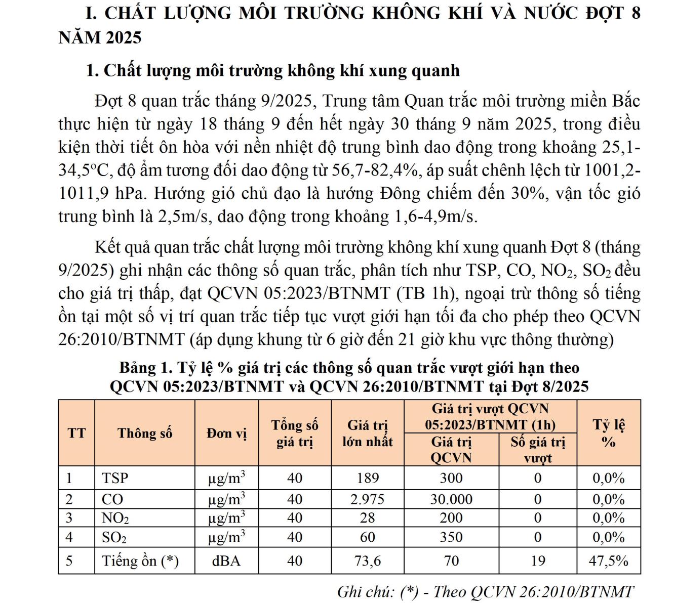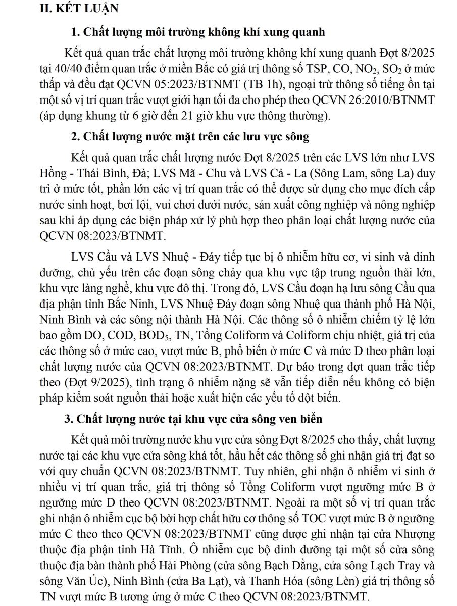 - BÁO CÁO CHẤT LƯỢNG MÔI TRƯỜNG TẠI KHU VỰC MIỀN BẮC (Đợt 7/2025, tháng 8/2025)