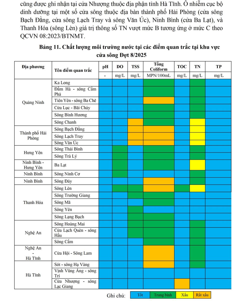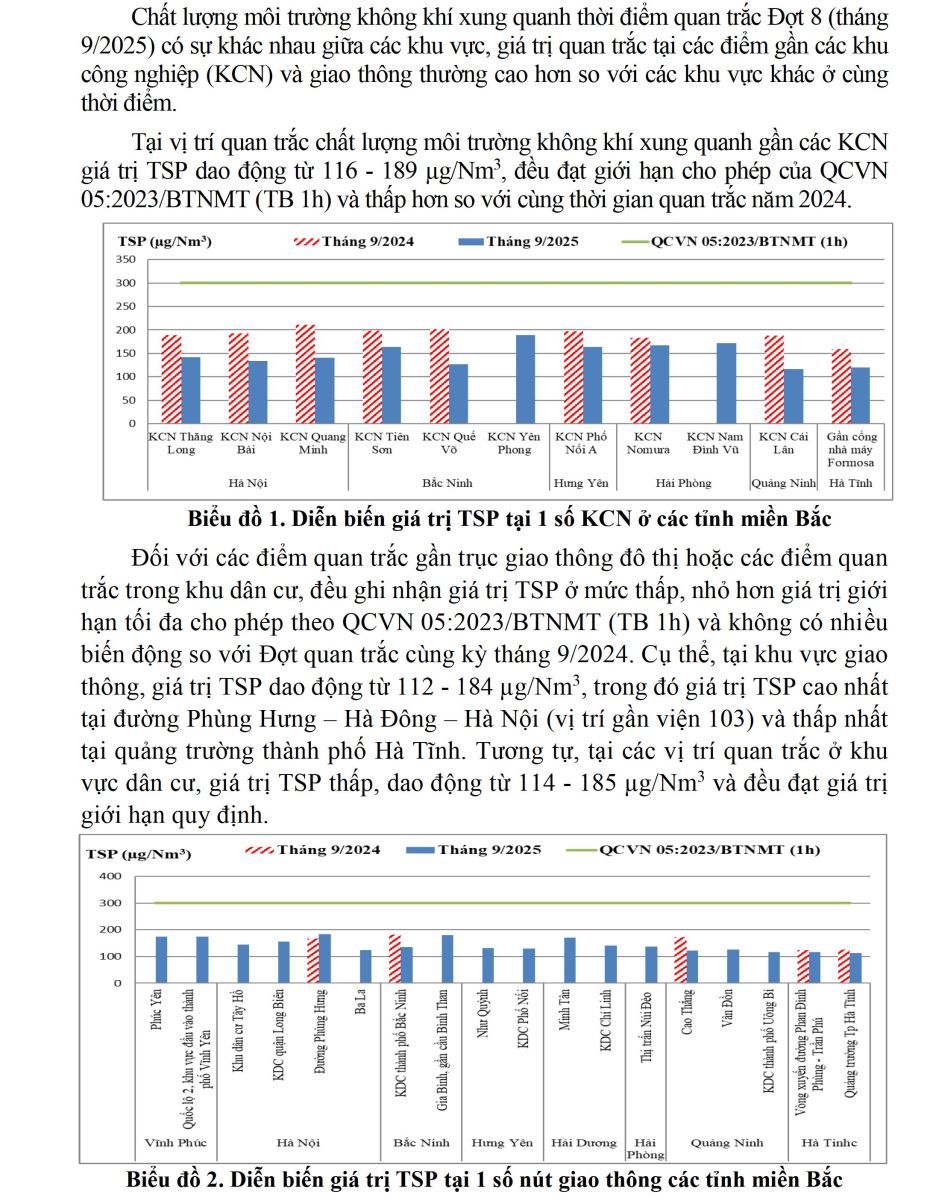 CHẤT LƯỢNG MÔI TRƯỜNG KHÔNG KHÍ VÀ NƯỚC TẠI KHU VỰC MIỀN BẮC (Đợt 8/2025, tháng 9/2025)
