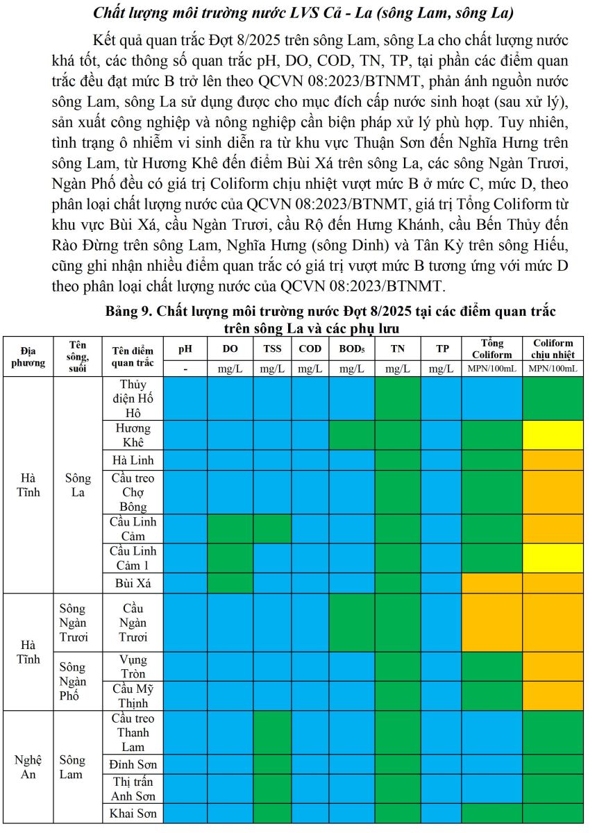- CHẤT LƯỢNG MÔI TRƯỜNG TẠI KHU VỰC MIỀN TRUNG (Đợt 1, tháng 8/2025)