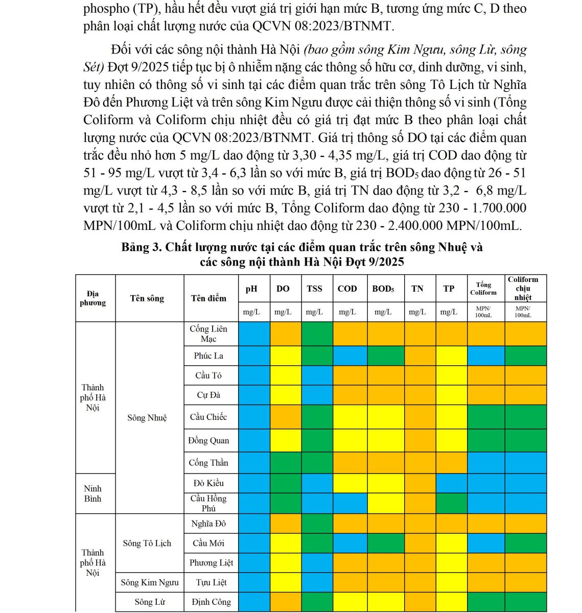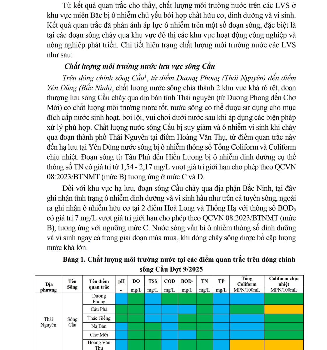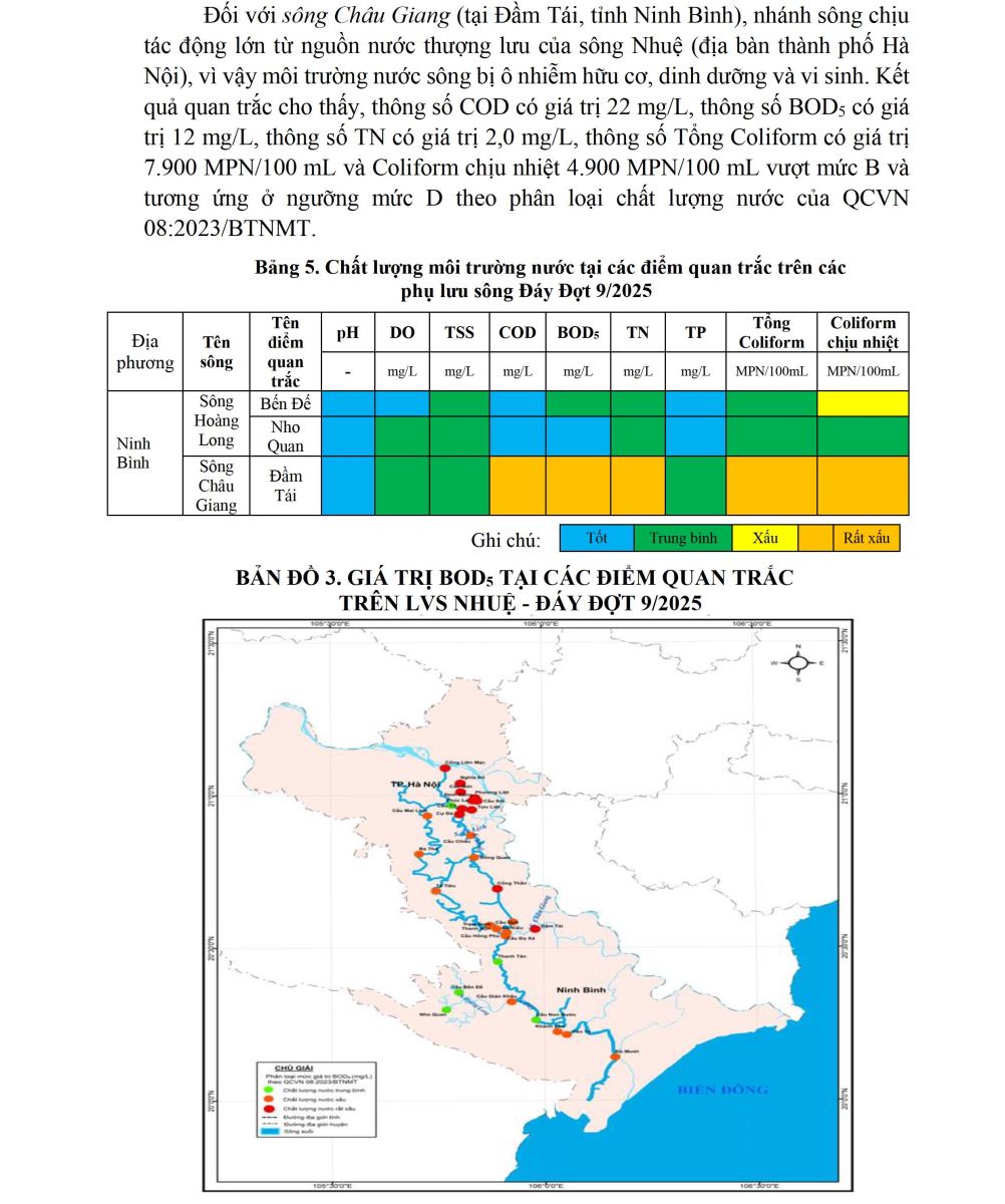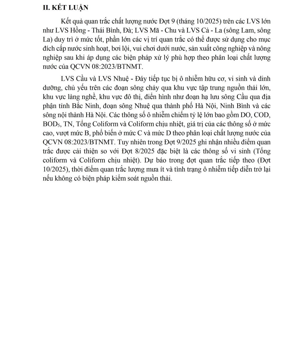 - BÁO CÁO CHẤT LƯỢNG MÔI TRƯỜNG TẠI KHU VỰC MIỀN BẮC (Đợt 7/2025, tháng 8/2025)