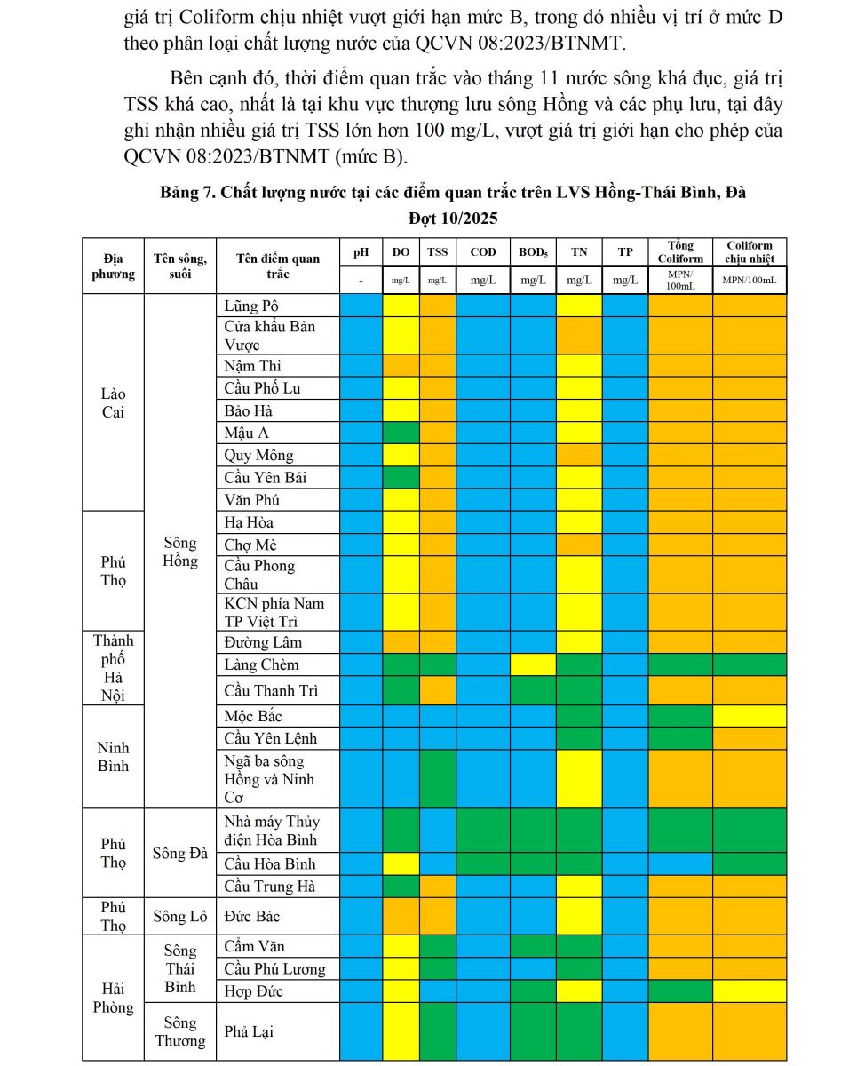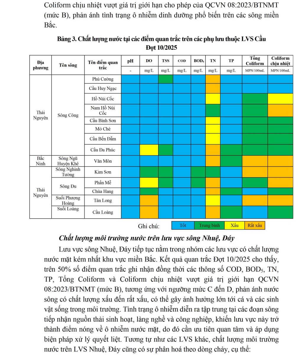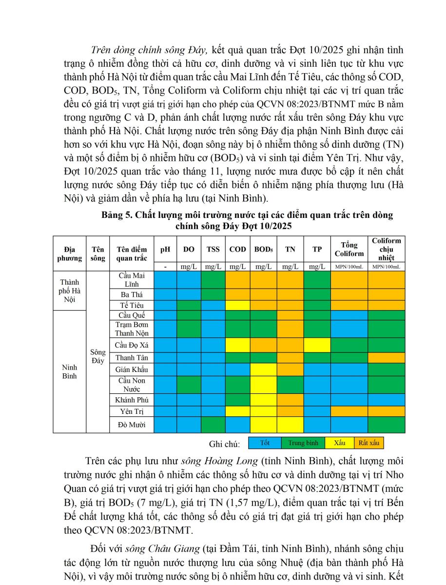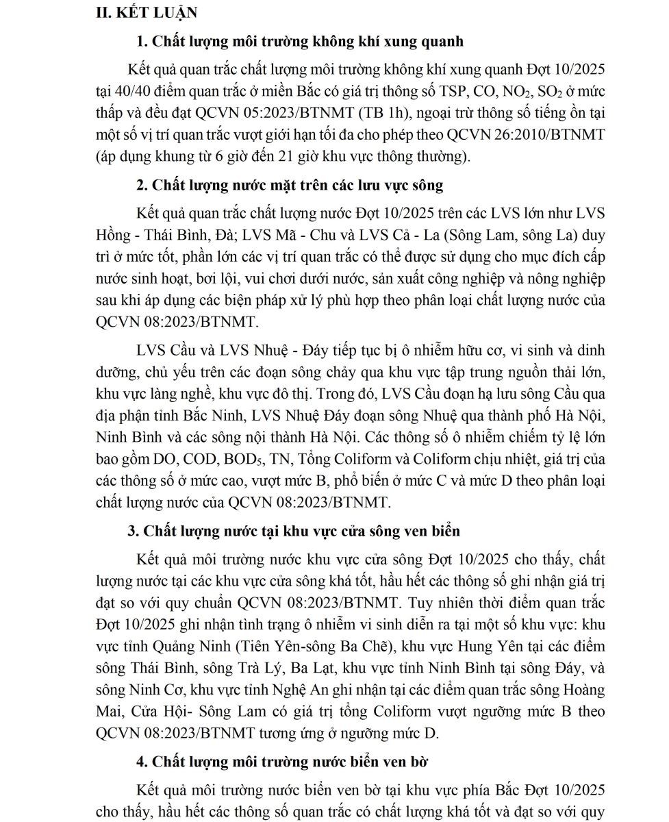 BÁO CÁO CHẤT LƯỢNG MÔI TRƯỜNG KHÔNG KHÍ VÀ NƯỚC TẠI KHU VỰC MIỀN BẮC (Đợt 10/2025, tháng 11/2025)