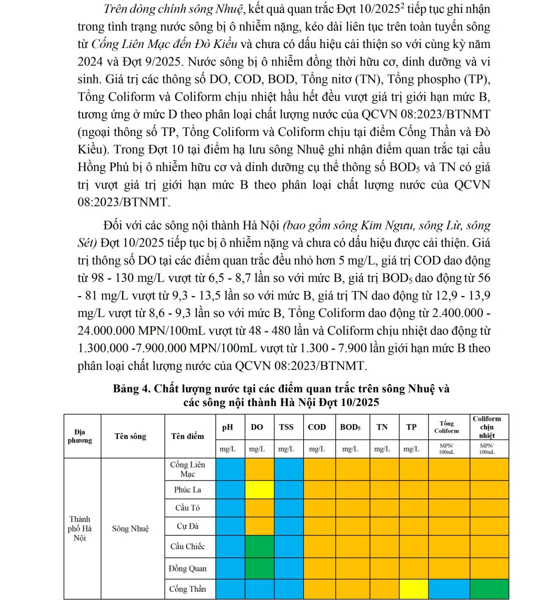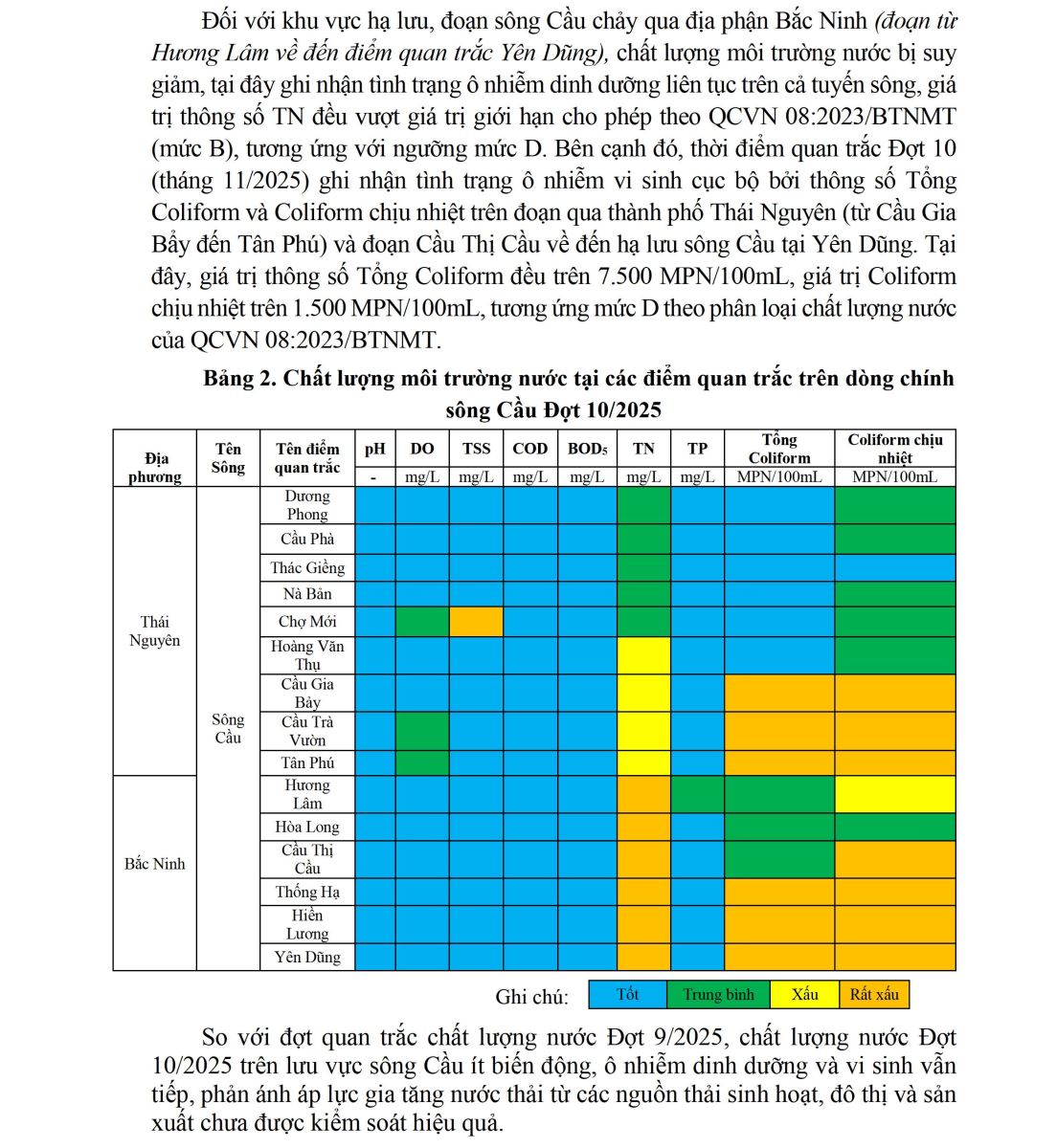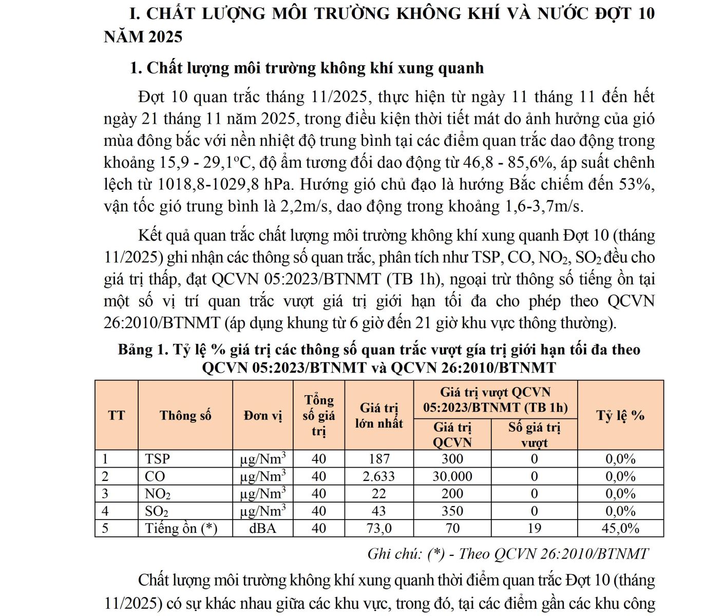 BÁO CÁO CHẤT LƯỢNG MÔI TRƯỜNG KHÔNG KHÍ VÀ NƯỚC TẠI KHU VỰC MIỀN BẮC (Đợt 10/2025, tháng 11/2025)