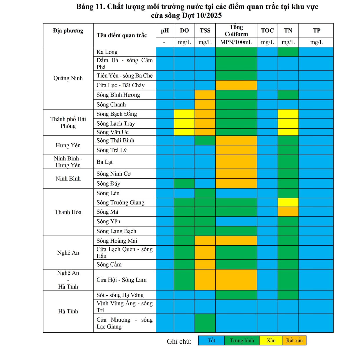 - CHẤT LƯỢNG MÔI TRƯỜNG TẠI KHU VỰC MIỀN TRUNG (Đợt 5, tháng 10/2025)