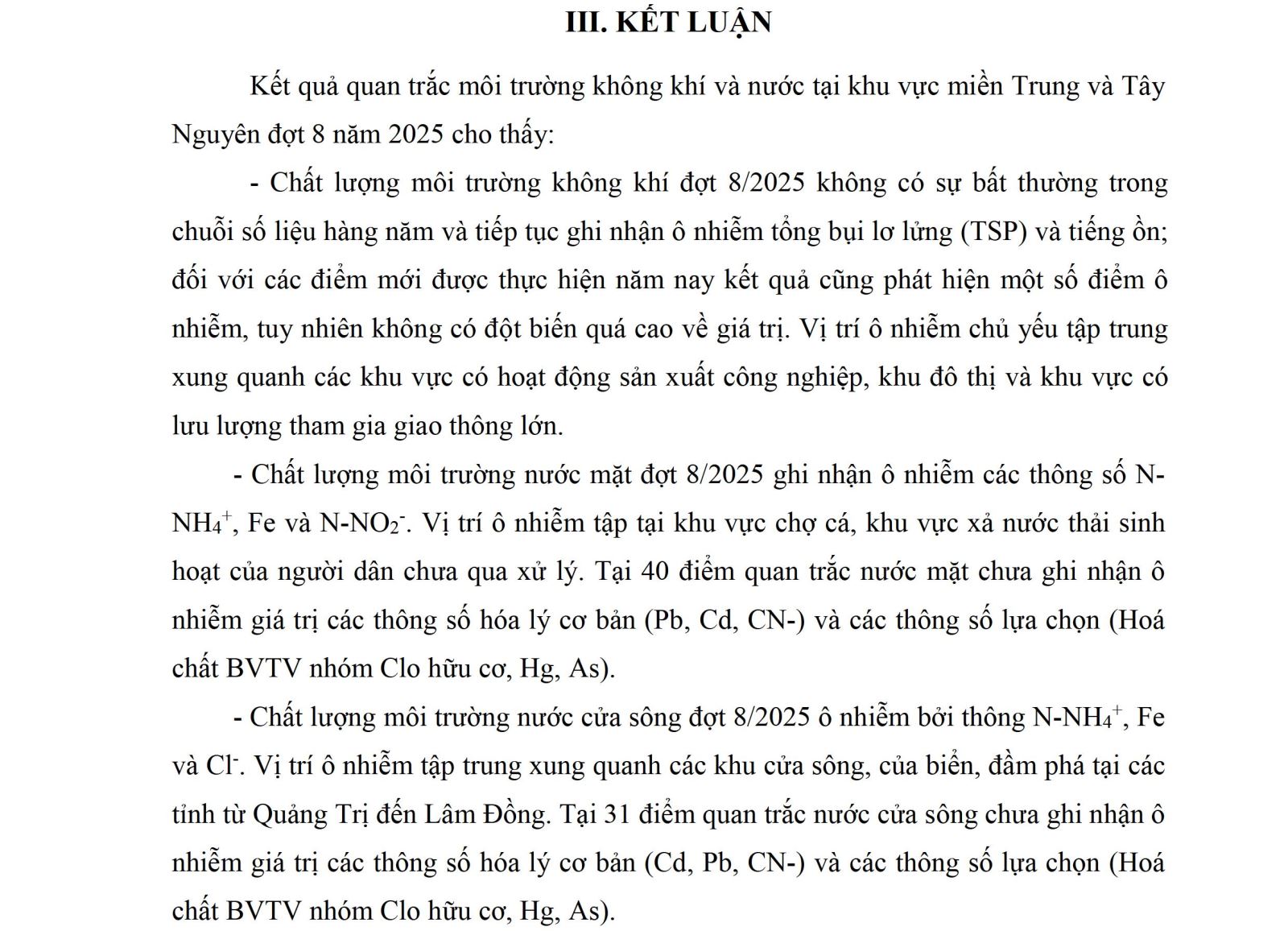 - CHẤT LƯỢNG MÔI TRƯỜNG TẠI KHU VỰC MIỀN TRUNG (Đợt 3, tháng 9/2025)