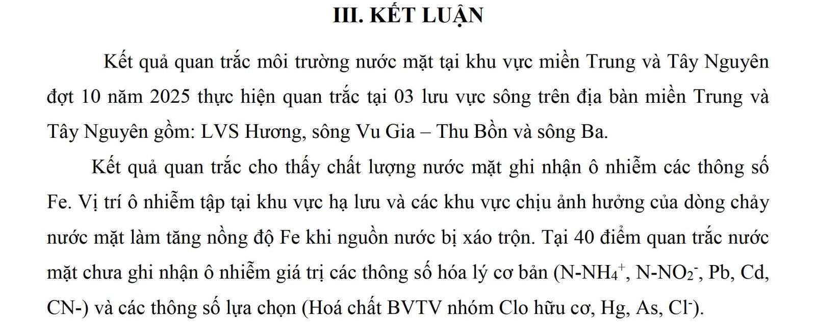 - CHẤT LƯỢNG MÔI TRƯỜNG NƯỚC MẶT TẠI KHU VỰC MIỀN TRUNG VÀ TÂY NGUYÊN Đợt 9 (Tháng 12 năm 2025)