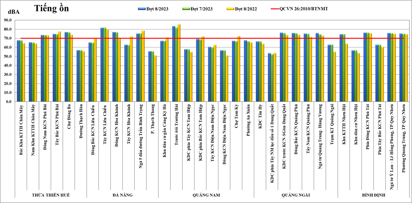 Biểu đồ 2. Tiếng ồn khu vực miền Trung đợt 8/2023 và đợt 7/2023, đợt 8/2022