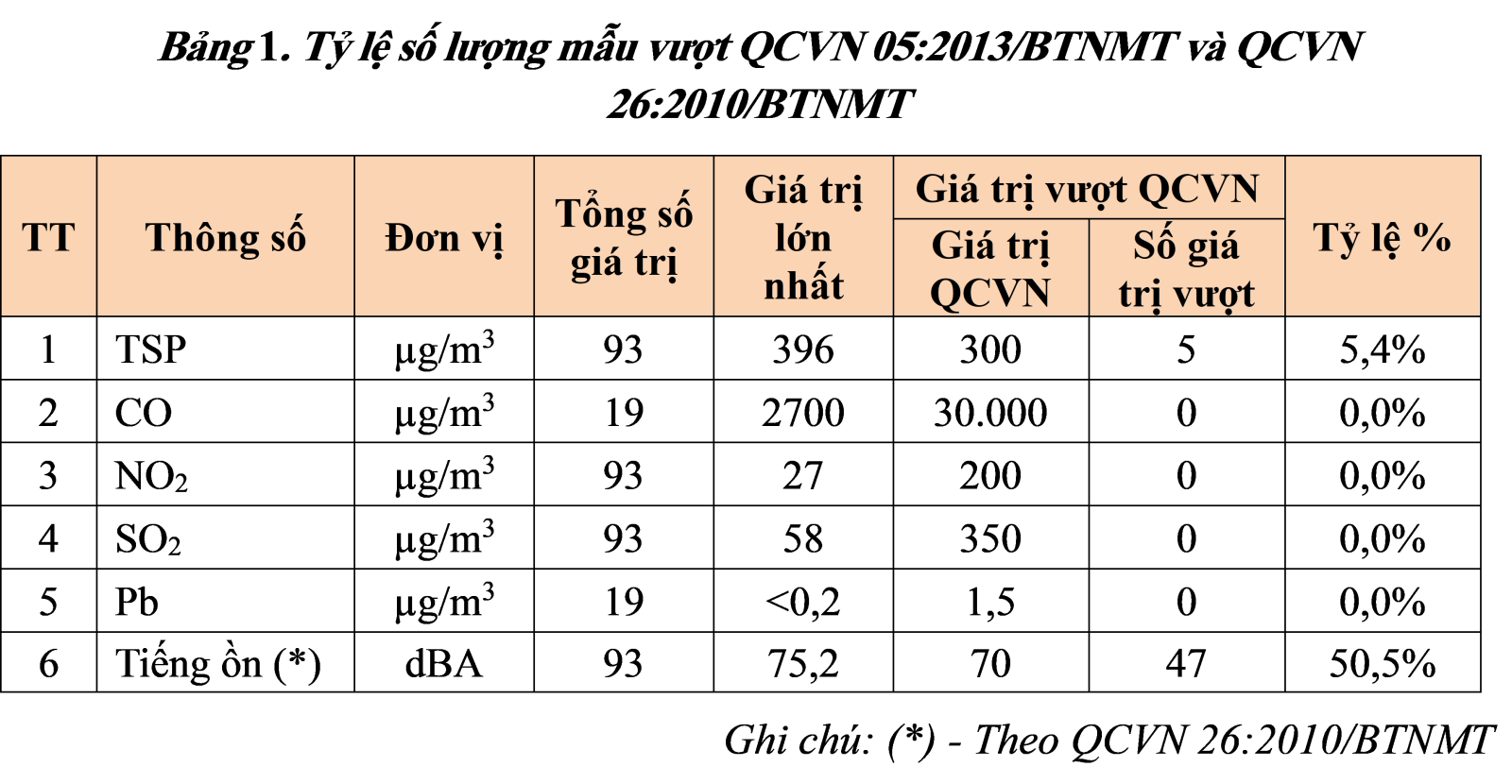 Các thông số khác (CO, Pb, SO2, NO2) cho giá trị thấp và đều đạt QCVN 05:2013/BTNMT.