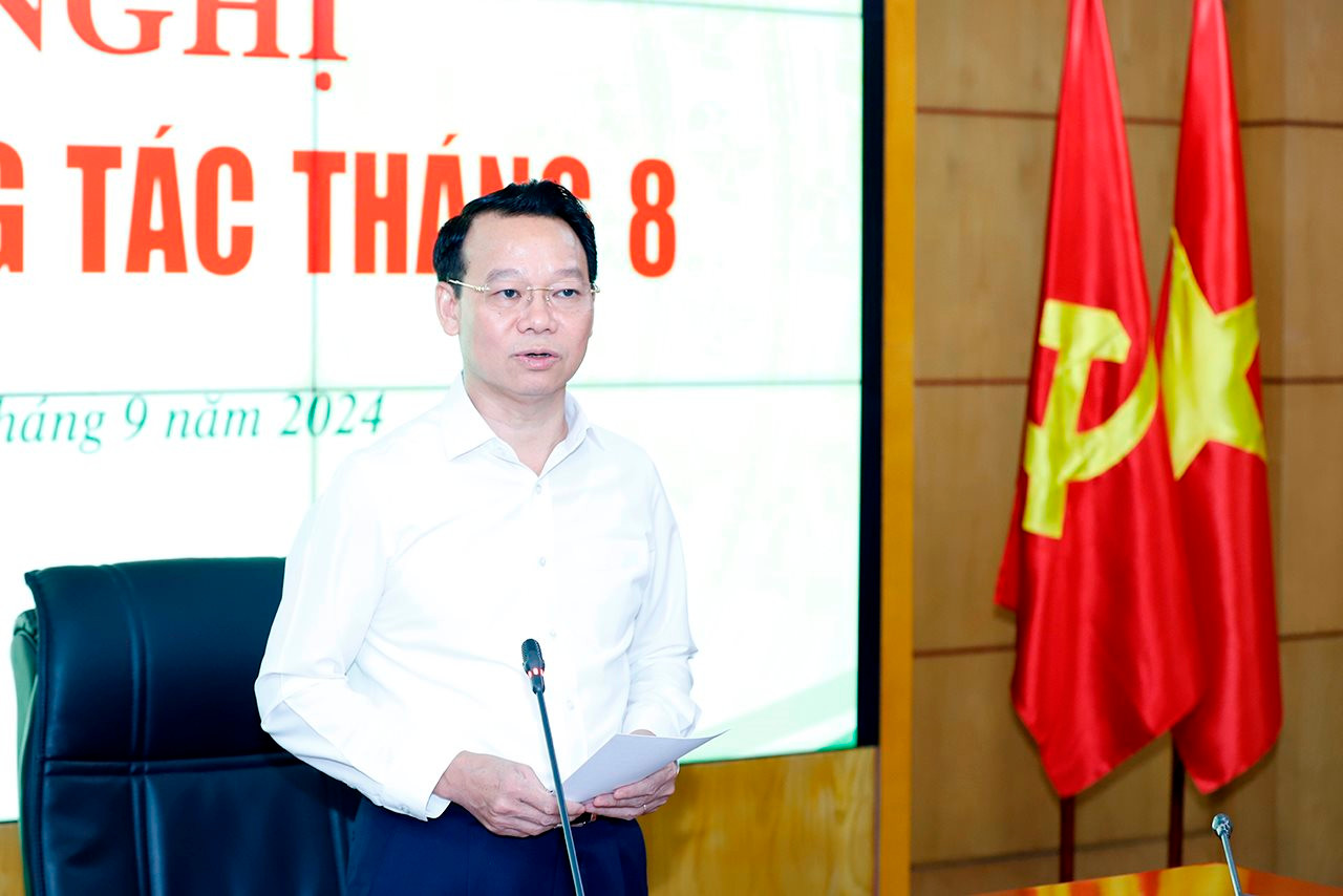 Phát biểu tại cuộc họp, Bộ trưởng Đỗ Đức Duy cho biết, qua báo cáo, trong tháng 8 và 8 tháng đầu năm 2024, Bộ Tài nguyên và Môi trường đã triển khai và hoàn thành được một khối lượng công việc rất lớn, đặc biệt là trong công tác xây dựng chính sách pháp luật. Bộ trưởng Đỗ Đức Duy đánh giá cao những nhiệm vụ các đơn vị đều cố gắng hoàn thành đảm bảo tiến độ, đáp ứng yêu cầu và khẳng định được vai trò, vị thế của Bộ, của ngành tài nguyên và môi trường trong hệ thống chính trị, đóng góp quan trọng trong phát triển kinh tế - xã hội của đất nước.