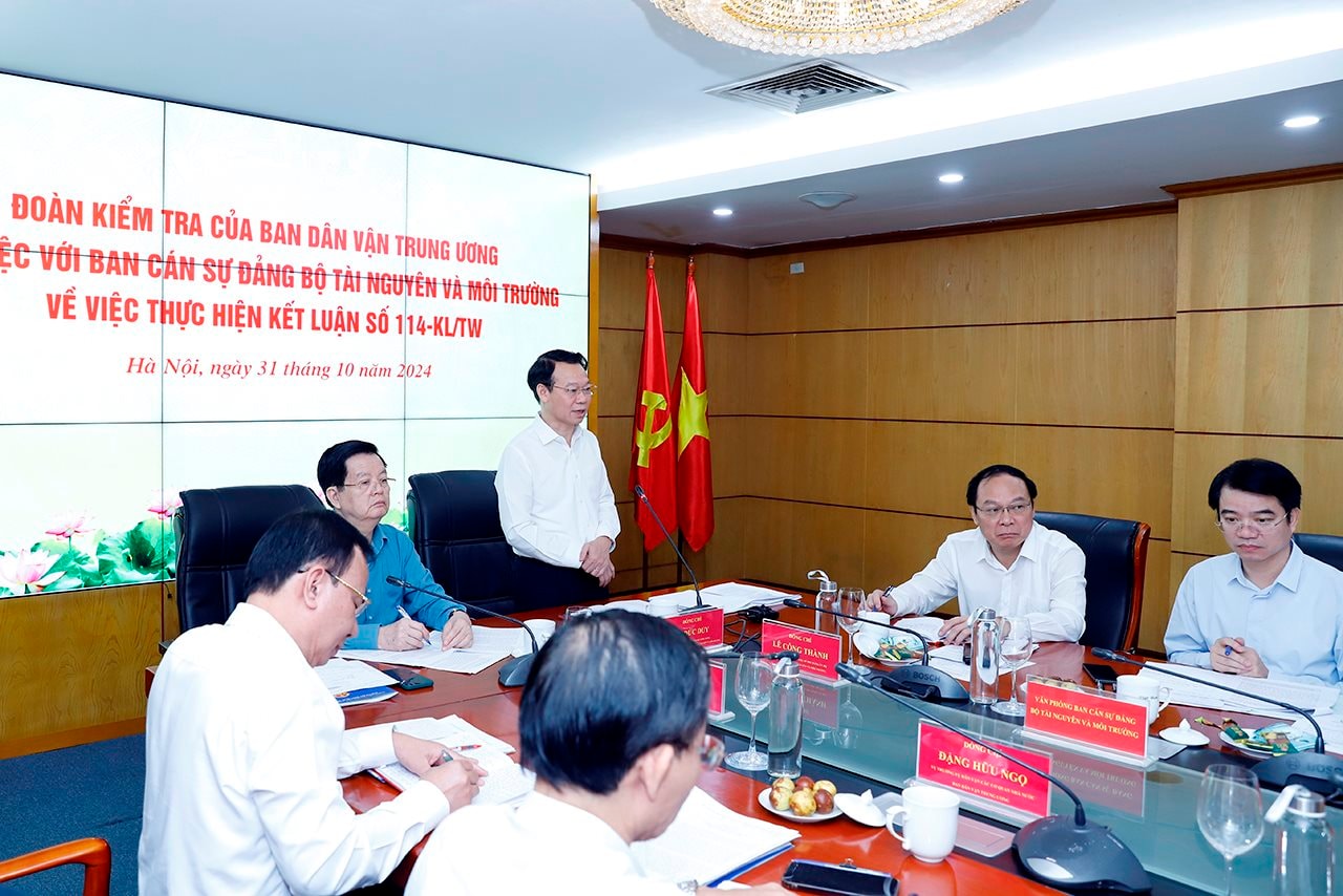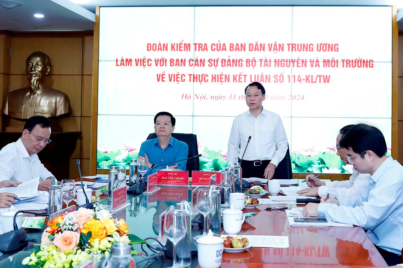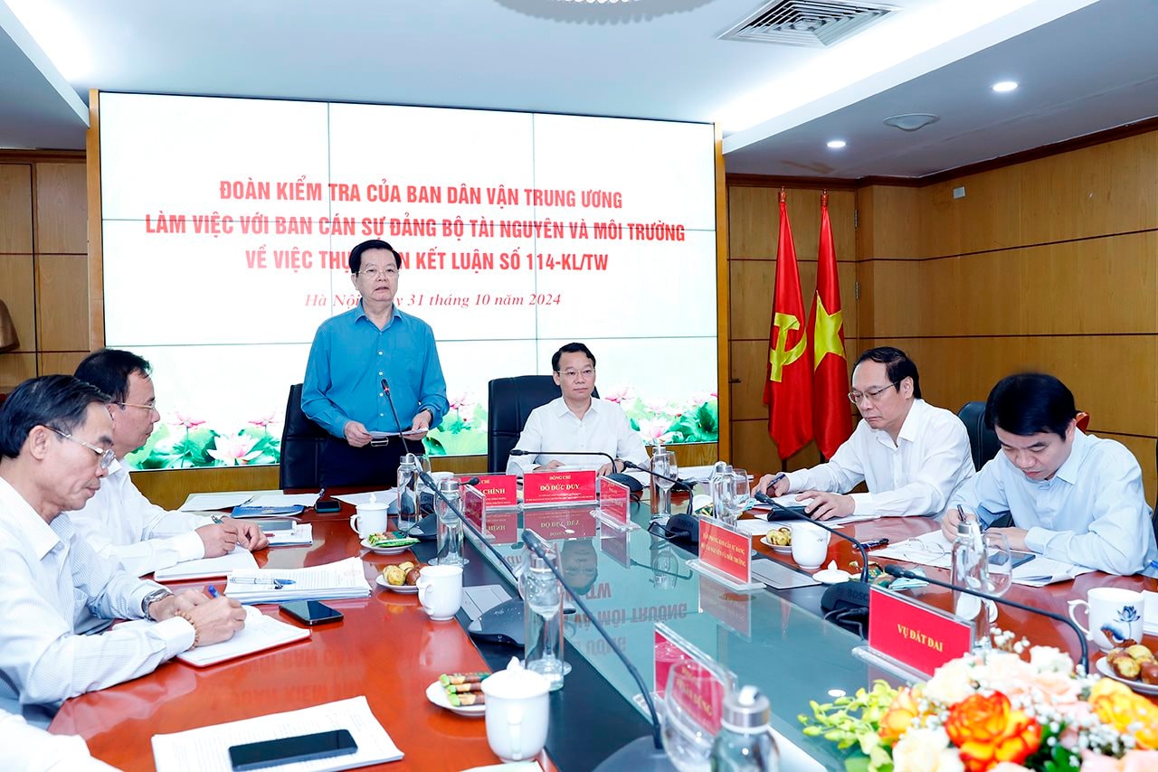 Phát biểu tại buổi làm việc, đồng chí Đỗ Đức Duy, Ủy viên Trung ương Đảng, Bí thư Ban Cán sự Đảng, Bộ trưởng Bộ Tài nguyên và Môi trường nhấn mạnh, công tác dân vận có ý nghĩa, vai trò hết sức quan trọng đối với Bộ, ngành Tài nguyên và Môi trường.