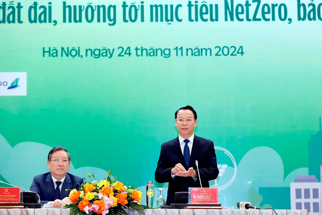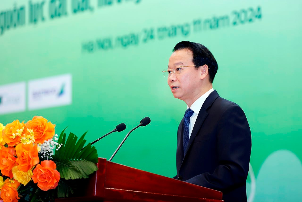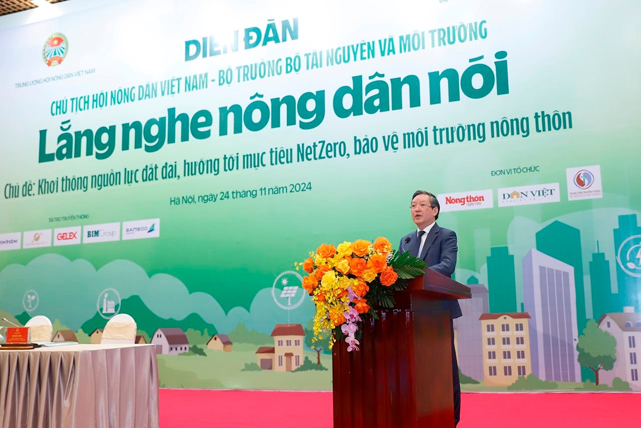 Bộ trưởng Đỗ Đức Duy phát biểu tại diễn đàn “Lắng nghe nông dân nói” với chủ đề “Khơi thông nguồn lực đất đai, hướng tới mục tiêu NetZero, bảo vệ môi trường nông thôn”