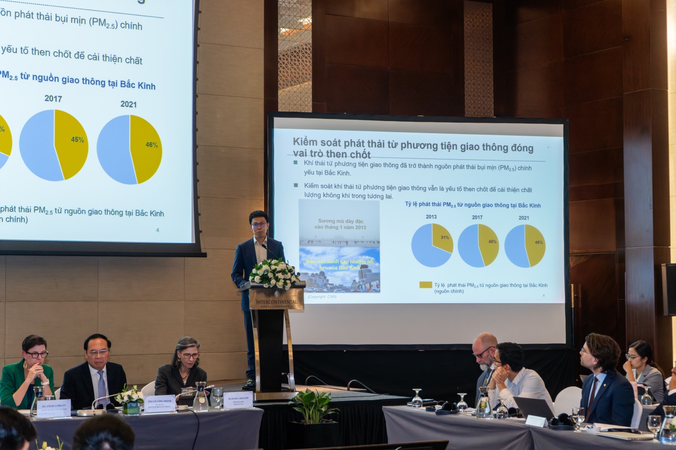 Phó Cục trưởng Cục Môi trường Lê Hoài Nam trình bày báo cáo tham luận thực trạng ô nhiễm không khí ở Việt Nam, nguyên nhân và đề xuất giải pháp