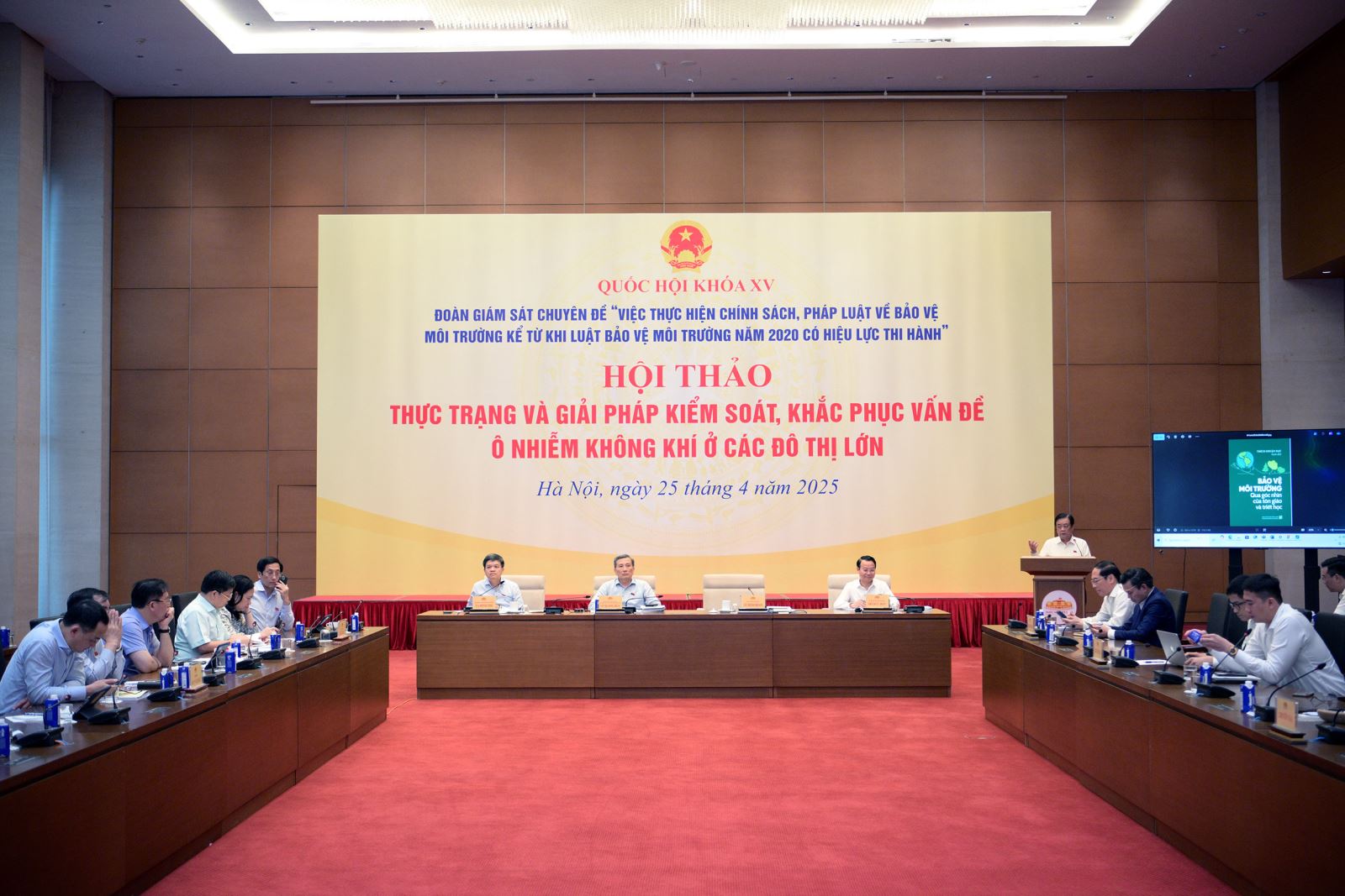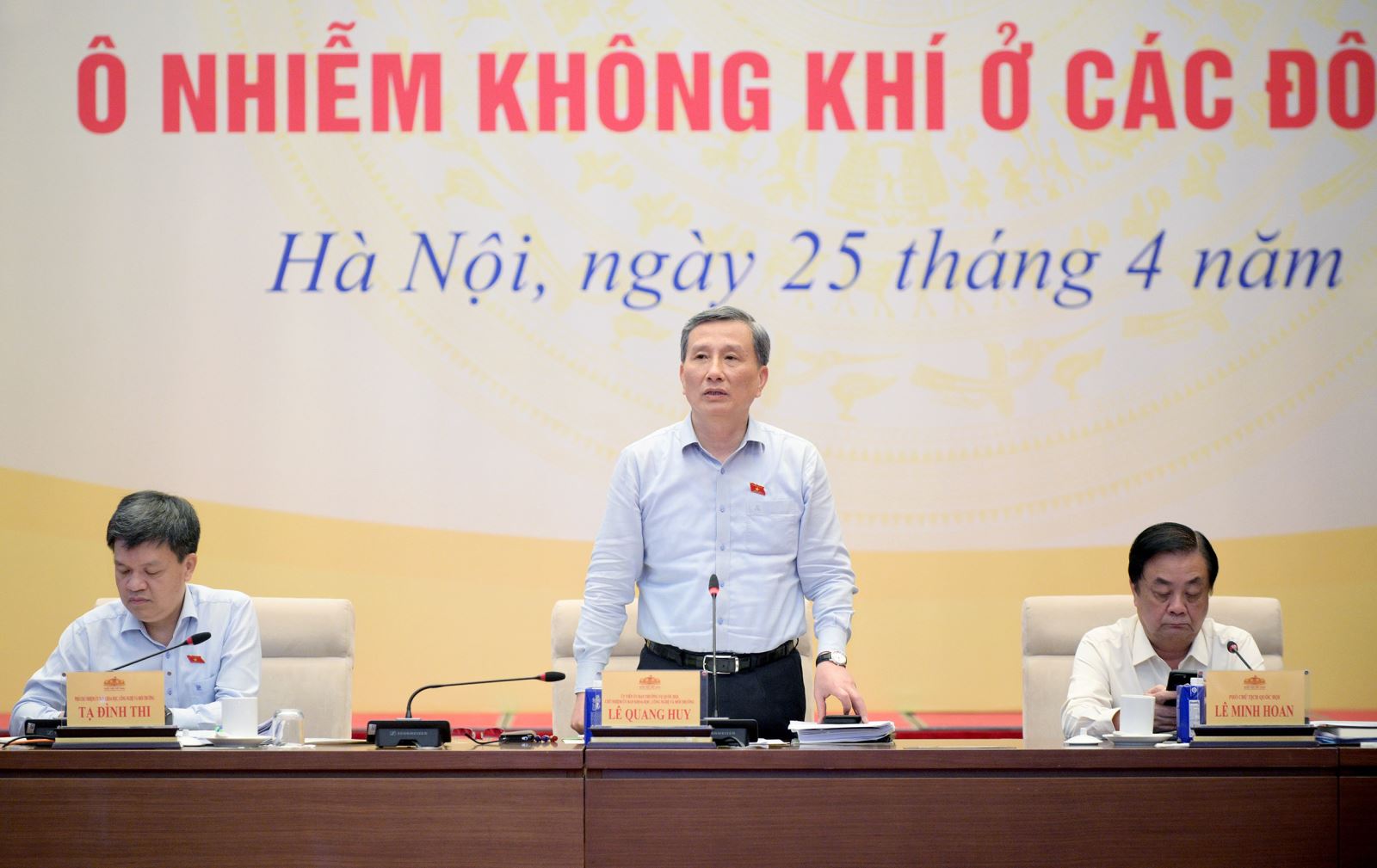 Phó Chủ tịch Quốc hội đề nghị, Bộ Nông nghiệp và Môi trường cần tiếp tục rà soát, đánh giá kết quả thực hiện các quyết định của Chính phủ về thực hiện kế hoạch quốc gia về quản lý chất lượng môi trường không khí trong thời gian qua; thực hiện hoạt động quan trắc chất lượng không khí thường xuyên, bảo đảm kiểm soát chặt chẽ chất lượng không khí; kịp thời cảnh báo về chất lượng không khí theo thời gian thực để bảo vệ sức khoẻ cho người dân; rà soát, nâng cao hiệu quả đầu tư, tăng cường năng lực quan trắc môi trường; đề xuất hoàn thiện chính sách, pháp luật về kiểm soát ô nhiễm không khí…
