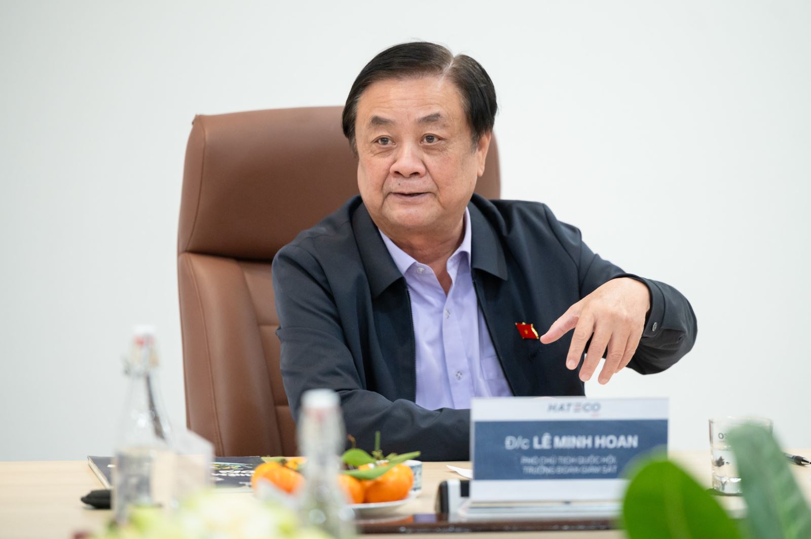 Phát biểu tại cuộc làm việc, Phó Chủ tịch Quốc hội Lê Minh Hoan biểu dương, đánh giá cao Công ty Cảng container quốc tế Hateco Hải Phòng là doanh nghiệp tư nhân đầu tiên dám dấn thân đầu tư cảng biển theo mô hình cảng biển thông minh - cảng biển xanh, tiên phong trong chuyển đổi xanh, chuyển đổi số và truyền cảm hứng cho các doanh nghiệp tư nhân khác, nhất là trong lĩnh vực logistics.