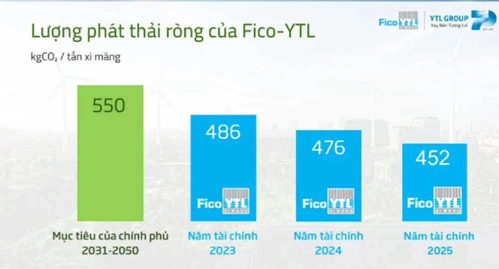 Bên cạnh đó, Fico-YTL cũng là một trong những doanh nghiệp sớm thiết lập hệ thống đo lường, báo cáo và kiểm kê phát thải theo chuẩn MRV từ năm 2020. Đến năm tài chính 2025, doanh nghiệp ghi nhận mức phát thải ròng chỉ còn 452 kg CO₂/tấn xi măng, thấp hơn đáng kể so với mục tiêu quốc gia đến năm 2050 là 550 kg CO₂/tấn.
