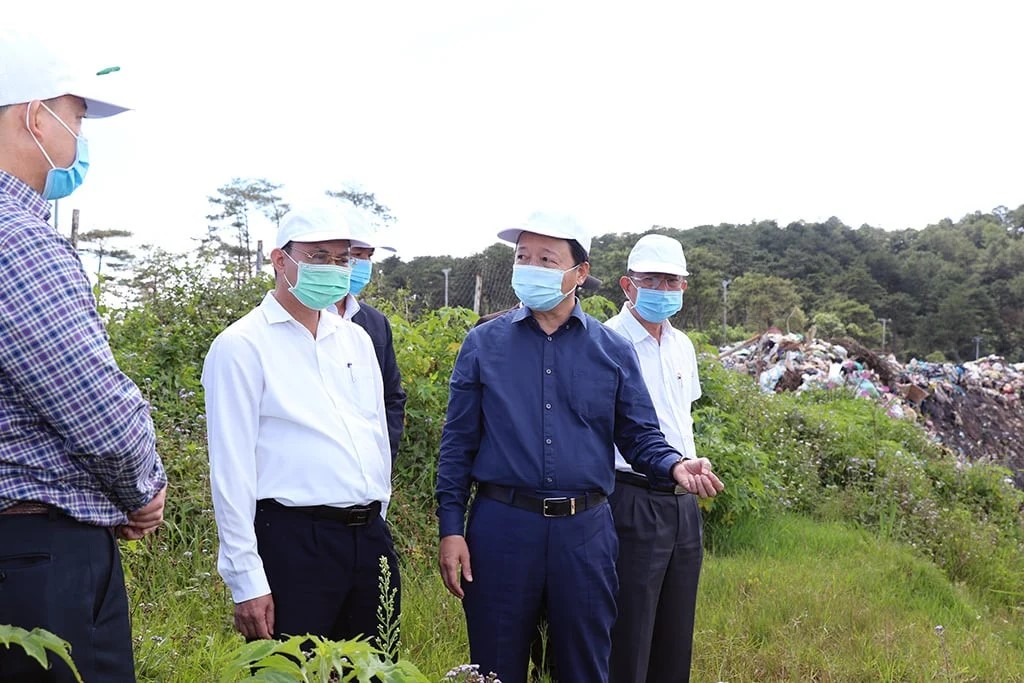 Bộ trưởng Bộ Tài nguyên và Môi trường Trần Hồng Hà (nay là Phó Thủ tướng Chính phủ) cùng ông Hoàng Văn Thức, Cục trưởng Cục Môi trường kiểm tra bãi rác Cam Ly, Đà Lạt, Lâm Đồng ngày 10/9/2020.