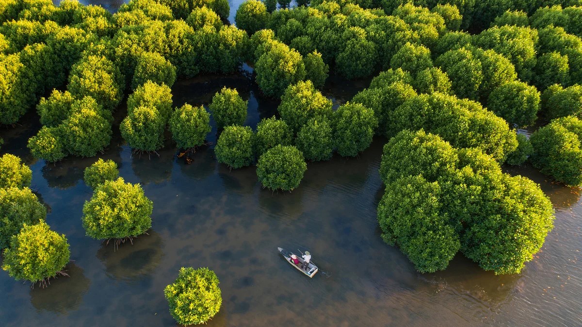 Rừng ngâp mặn chắn sóng, giảm tác động của nước biển dâng và hấp thụ khí nhà kính.