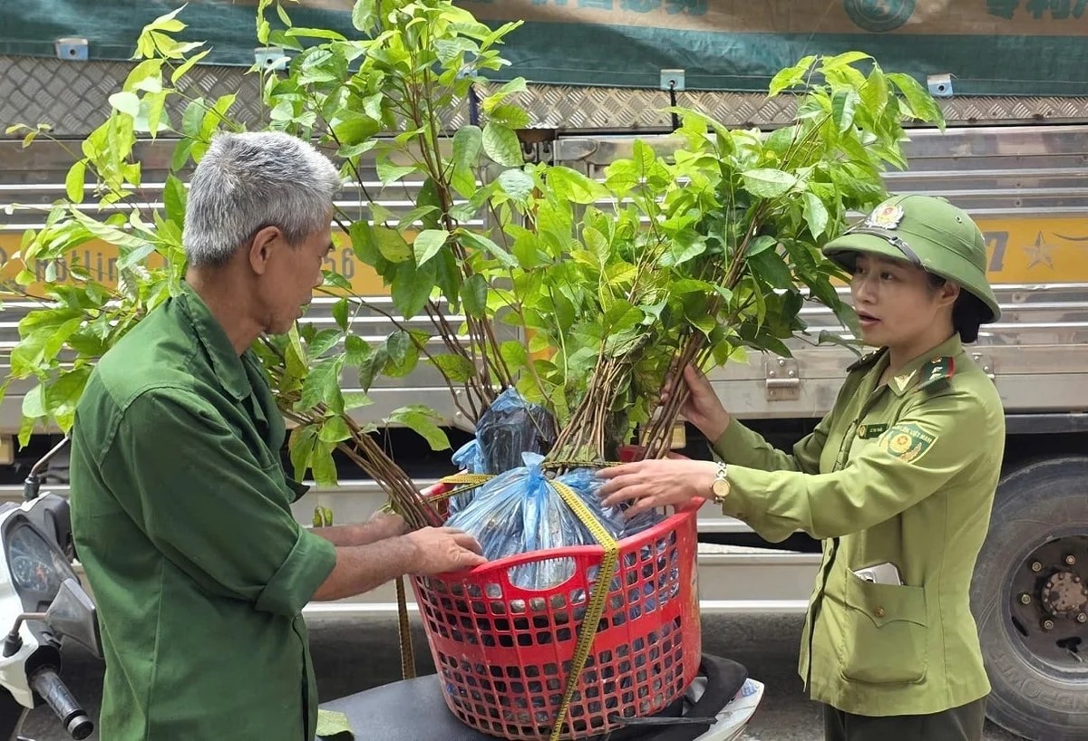 Lực lượng kiểm lâm Lạng Sơn cấp cây giống, hướng dẫn và nhắc nhở người dân trồng, chăm sóc cây đúng kỹ thuật.