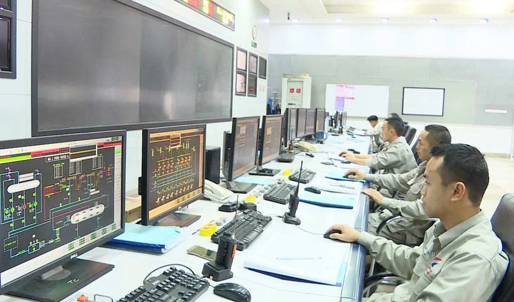 Cán bộ kỹ thuật Nhà máy Nhiệt điện Đông Triều - TKV theo dõi số liệu của hệ thống quan trắc và truyền số liệu quan trắc môi trường tự động..