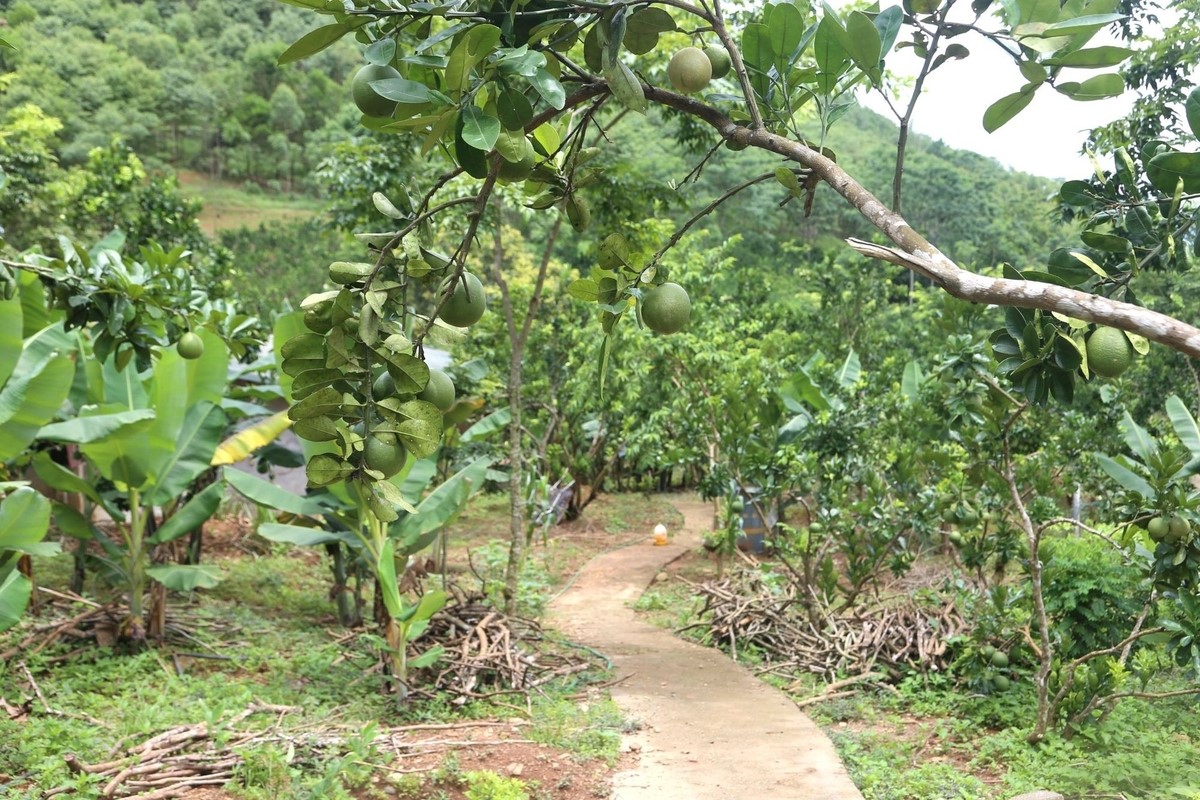 Vườn bưởi, chuối xanh tốt nhưng chưa đem lại hiệu quả kinh tế cao cho nông dân xã Cao Sơn, huyện Đà Bắc, tỉnh Hòa Bình.