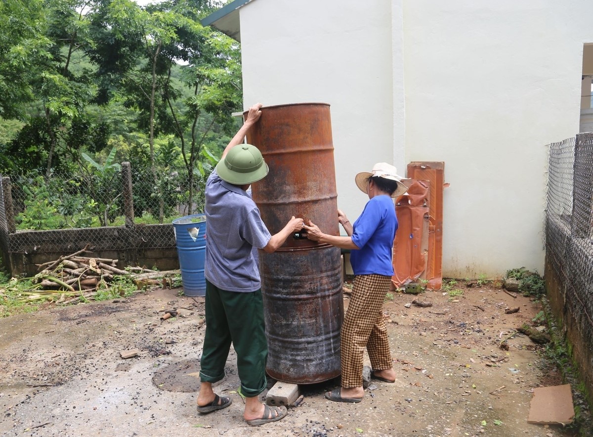 Cách đó gần 2km, tại thôn Sèo, bà Nguyễn Thị Tính (68 tuổi) như bắt được vàng khi tham gia lớp tập huấn làm than sinh học, ủ phân, làm chế phẩm vi sinh và trồng tre. Về nhà, bà bắt tay làm ngay 13kg than sinh học, kết hợp ủ phân bón cho đất. Bên cạnh đó, bà cũng ủ phế phẩm rau quả với đường để tạo thành chế phẩm vi sinh, pha với nước tưới cho vườn ngô và vườn cây ăn quả - một kỹ thuật hoàn toàn mới với nông dân quen dùng phân hóa học hàng chục năm nay.
