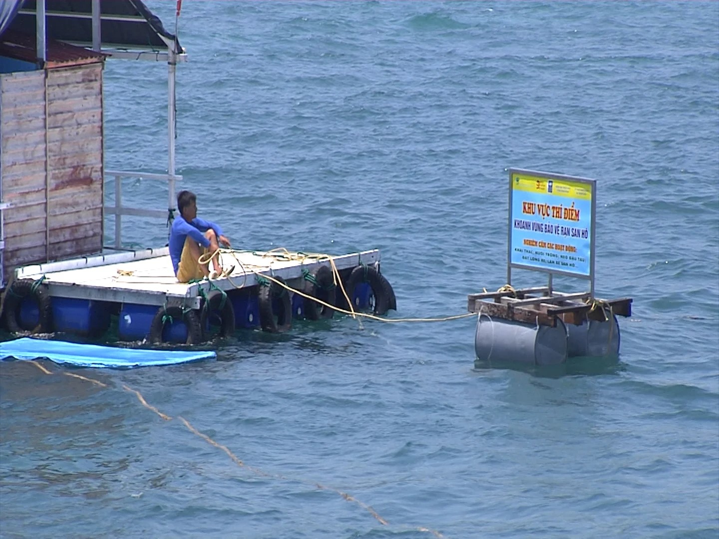 Anh Sáng với mô hình bè cảng bảo vệ san hô kết hợp du lịch xã Nhơn Hải (sáng kiến do anh đề xuất).