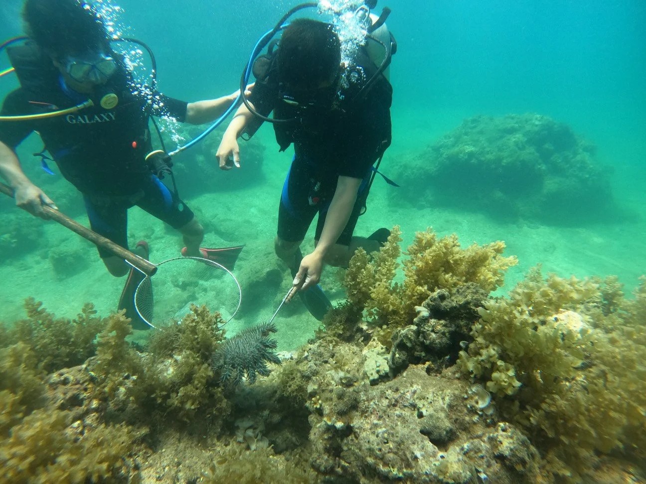Tổ Bảo vệ san hô thường xuyên tổ chức bắt sao biển gai và thu gom rác dưới đáy biển.
