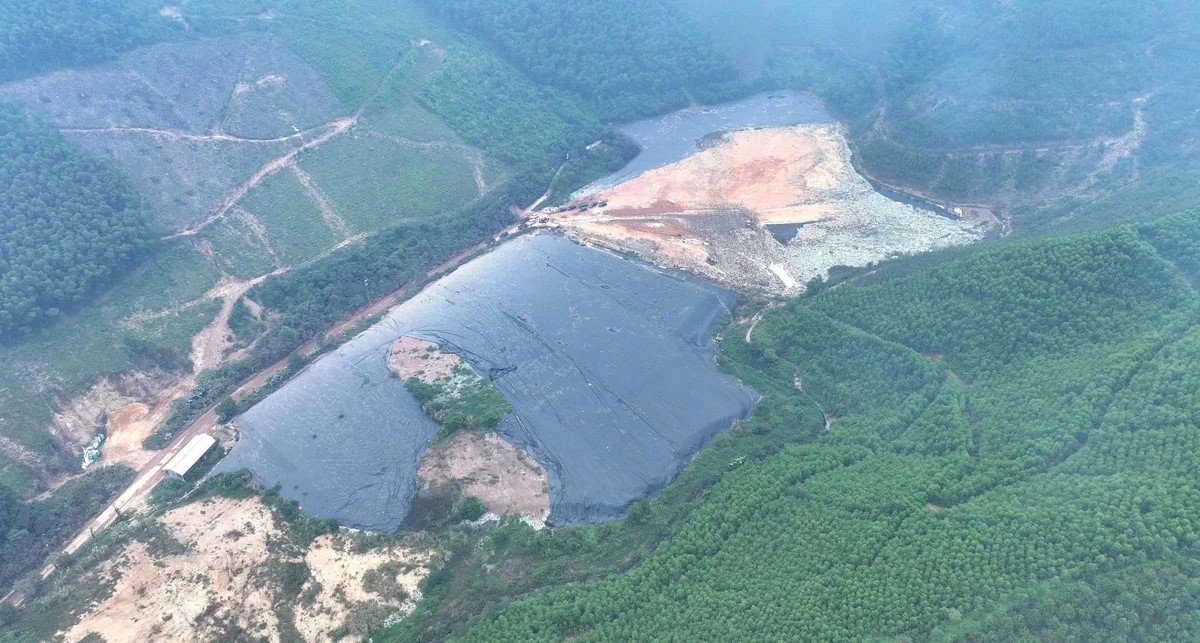 Toàn cảnh khu vực xử lý rác thải Đá Mài, xã Tân Cương, Thái Nguyên.