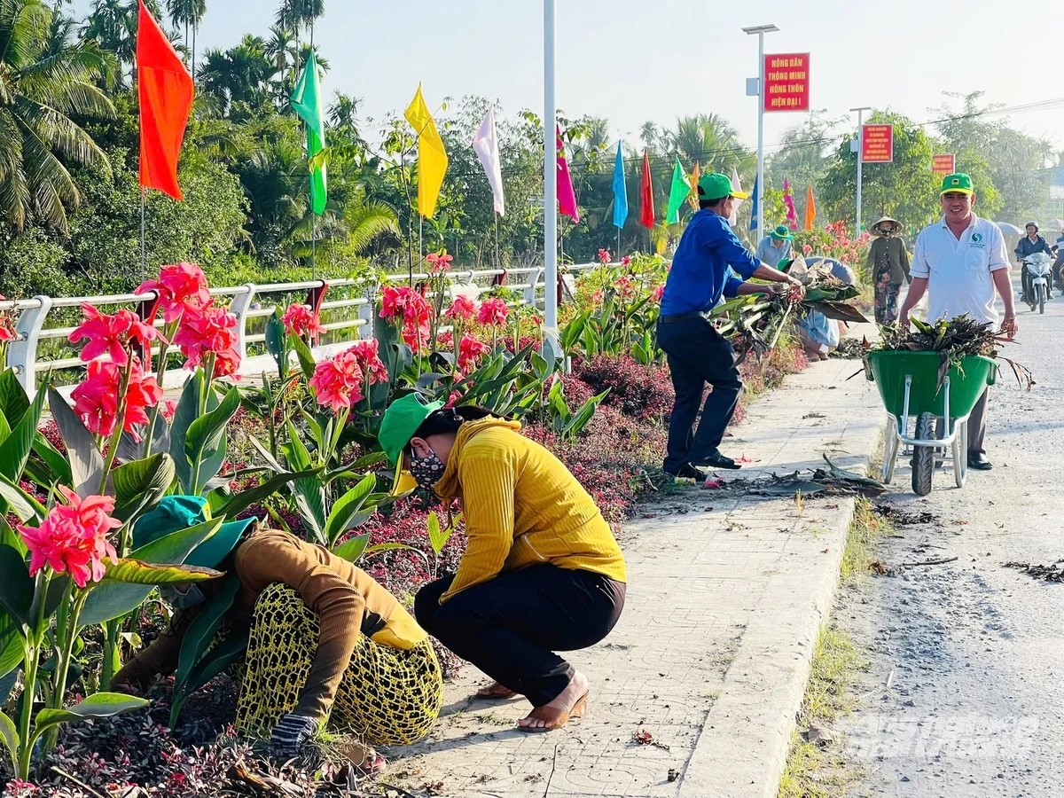 Ngay sau lễ phát động, các lực lượng ra quân dọn dẹp vệ sinh, chăm sóc bồn hoa, thu gom rác thải trên các tuyến đường, góp phần chỉnh trang cảnh quan nông thôn sáng, xanh, sạch, đẹp trước thềm Tết Nguyên đán.