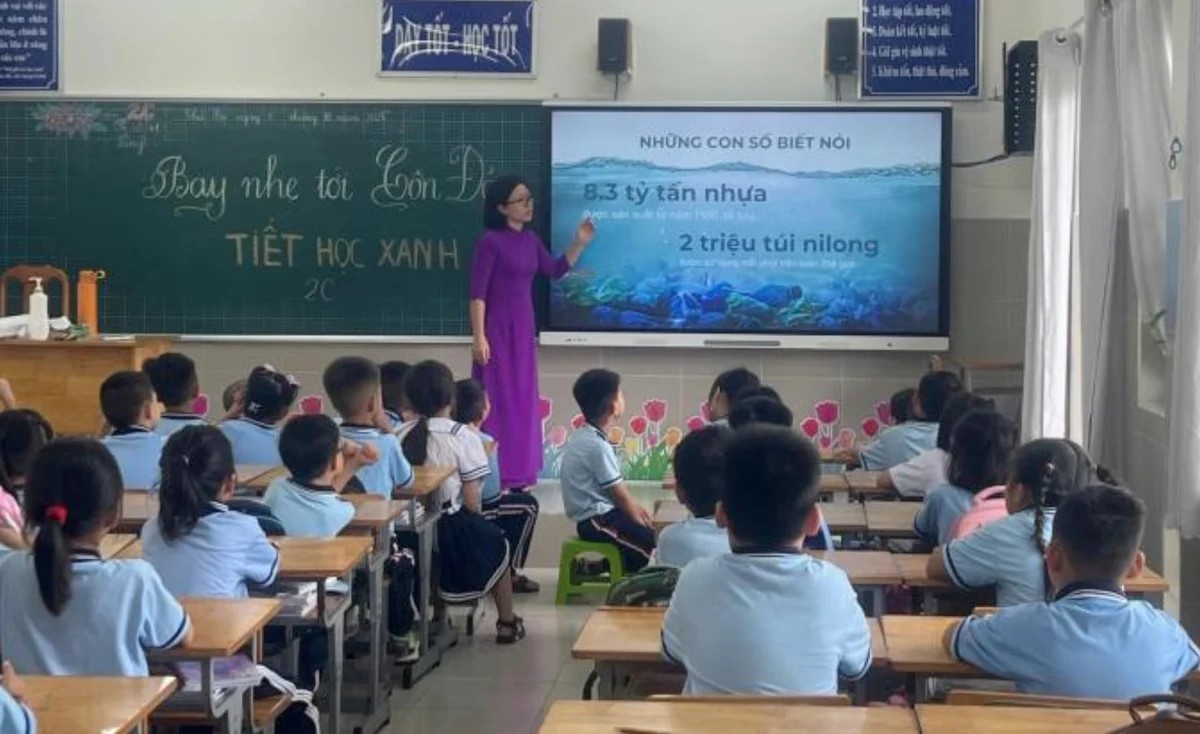 Các tiết học tại trường Tiểu học Cao Văn Ngọc được lồng ghép nội dung giáo dục môi trường, giúp học sinh ý thức hơn trong bảo vệ môi trường, giảm thiểu rác thải nhựa.