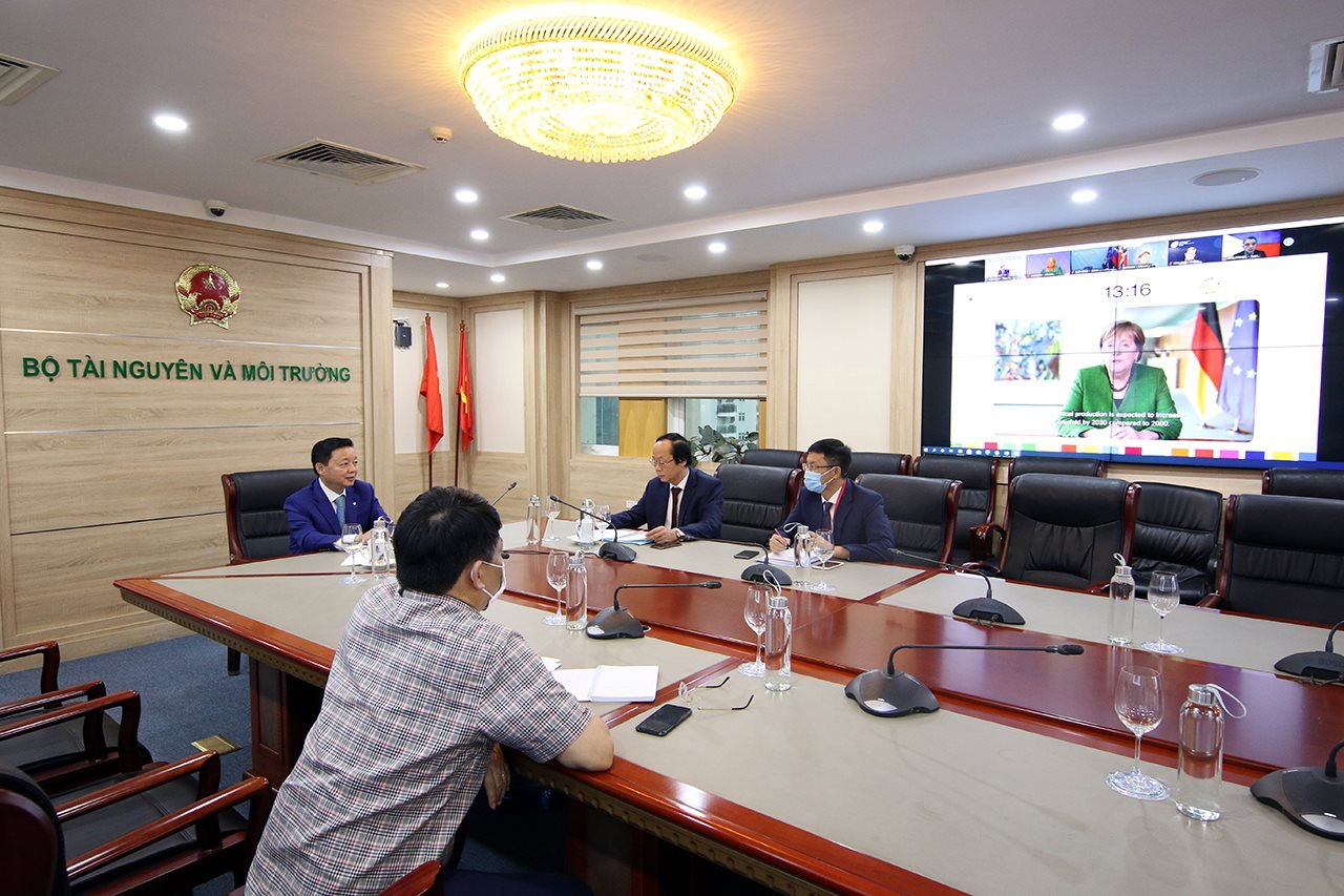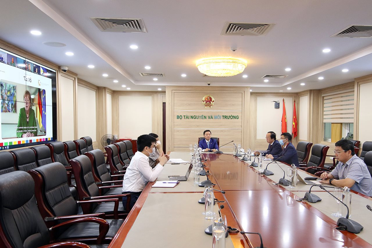 Bộ trưởng Tài nguyên và Môi trường Việt Nam Trần Hồng Hà cùng Thứ trưởng Võ Tuấn Nhân tham dự Diễn đàn Berlin về Kinh tế Hóa chất và Phát triển Bền vững theo hình thức trực tuyến tại Bộ Tài nguyên và Môi trường |