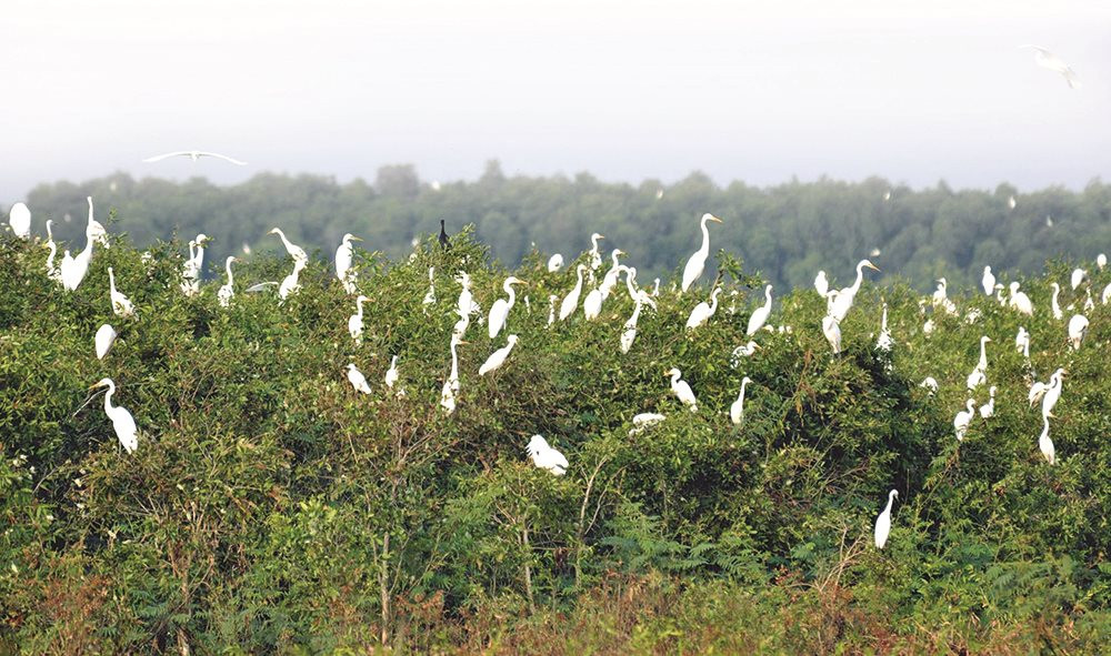 Loài chim di cư đậu kín cả một vạt rừng tại Khu bảo tồn đất ngập nước Láng Sen. |