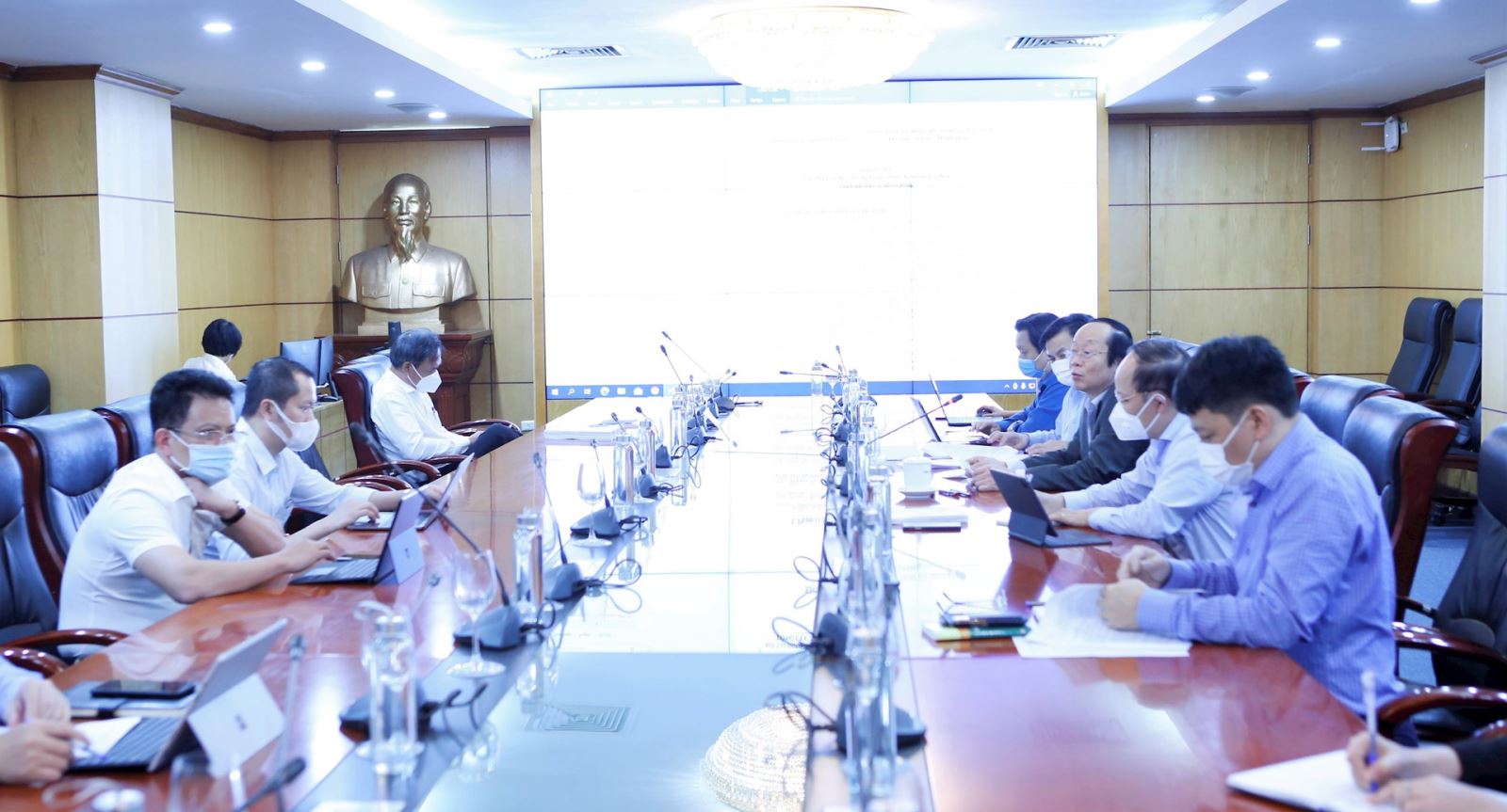 Bộ trưởng Trần Hồng Hà và Thứ trưởng Võ Tuấn Nhân chủ trì họp với Tổng cục Môi trường việc triển khai các nhiệm vụ trọng tâm lĩnh vực môi trường năm 2022