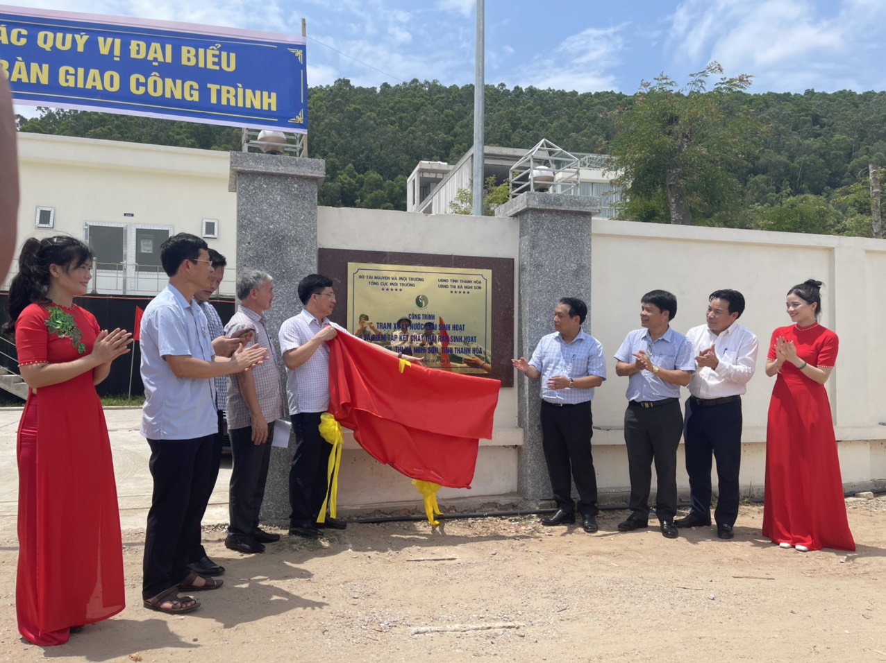Nghi lễ gắn biến và bàn giao công trình Trạm xử lý nước thải cho UBND xã đảo Nghi Sơn