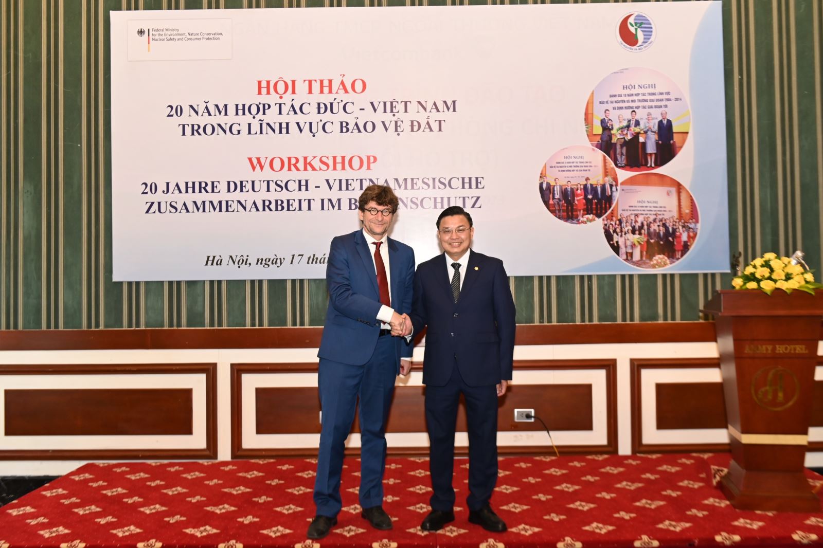 Hội thảo do ông Hoàng Văn Thức, Cục trưởng Cục Kiểm soát ô nhiễm môi trường, Bộ Tài nguyên và Môi trường (TN&MT) và ông Thomas Strassburger, Vụ trưởng Vụ Bảo vệ Đất, khắc phục hậu quả và Luật khai thác mỏ, Bộ Môi trường, Bảo tồn thiên thiên, An toàn hạt nhân và Bảo vệ người tiêu dùng - CHLB Đức (viết tắt là Bộ Môi trường CHLB Đức) đồng chủ trì. Tham dự Hội thảo, về phía Bộ TN&MT Việt Nam có đại diện các đơn vị trực thuộc Cục Kiểm soát ô nhiễm môi trường cùng các chuyên gia đến từ Học viện Nông nghiệp Việt Nam, Viện Khoa học và công nghệ môi trường - Đại học Bách Khoa Hà Nội, Viện Thổ nhưỡng nông hóa,... Về phía Bộ Môi trường, Bảo tồn thiên thiên, An toàn hạt nhân và Bảo vệ người tiêu dùng, Cộng hòa Liên bang Đức có bà Viktoriya Lukhmanova - Vụ Bảo vệ Đất, khắc phục hậu quả và Luật khai thác mỏ; Tiến sĩ Harald Mark - Tổng Giám đốc Công ty MSP, Bochum; Tiến sĩ Michael Zschiesche - Giám đốc Viện độc lập về các vấn đề Môi trường (UfU)…