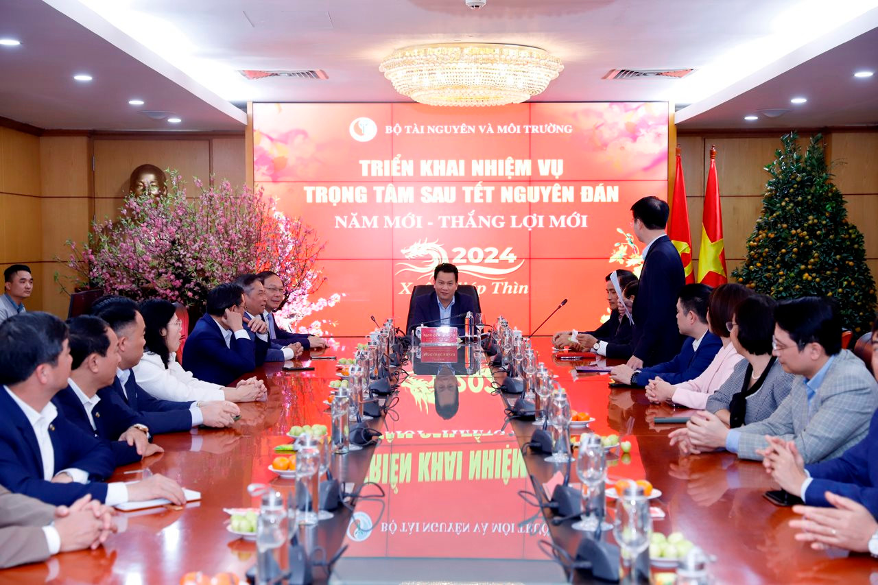 Tại cuộc họp, Chánh Văn phòng Bộ Phạm Tân Tuyến đã báo cáo nhanh các nhiệm vụ của Bộ sau Tết nguyên đán. Theo đó, thực hiện Chỉ thị số 26-CT/TW ngày 23 tháng 11 năm 2023 của Ban Bí thư và Chỉ thị số 30/CT-TTg ngày 15 tháng 12 năm 2023 của Thủ tướng Chính phủ về việc tăng cường các biện pháp bảo đảm đón Tết Nguyên đán Giáp Thìn vui tươi, lành mạnh, an toàn, tiết kiệm, Bộ đã chỉ đạo các đơn vị trực thuộc Bộ thực hiện nghiêm túc nội dung của các Chỉ thị. Lãnh đạo Bộ và các đơn vị trực thuộc Bộ đã có những hoạt động thiết thực chăm lo đời sống cán bộ, công chức, viên chức và người lao động trong Ngành tài nguyên và môi trường, đặc biệt là những người đang công tác tại đài, trạm khí tượng thủy văn và các đoàn địa chất ở vùng sâu, vùng xa, vùng đặc biệt khó khăn; tạo điều kiện để cán bộ, công chức, viên chức và người lao động đón Tết đầy đủ, an vui. Tổ chức thăm hỏi, chúc Tết các gia đình chính sách, gia đình có hoàn cảnh đặc biệt khó khăn; công chức, viên chức, người lao động Ngành tài nguyên và môi trường làm nhiệm vụ trong những ngày Tết. Ngoài ra, tổ chức lực lượng ứng trực đảm bảo các hoạt động thông suốt trong mọi tình huống; quán triệt thực hiện các quy định về đón Tết Nguyên đán.