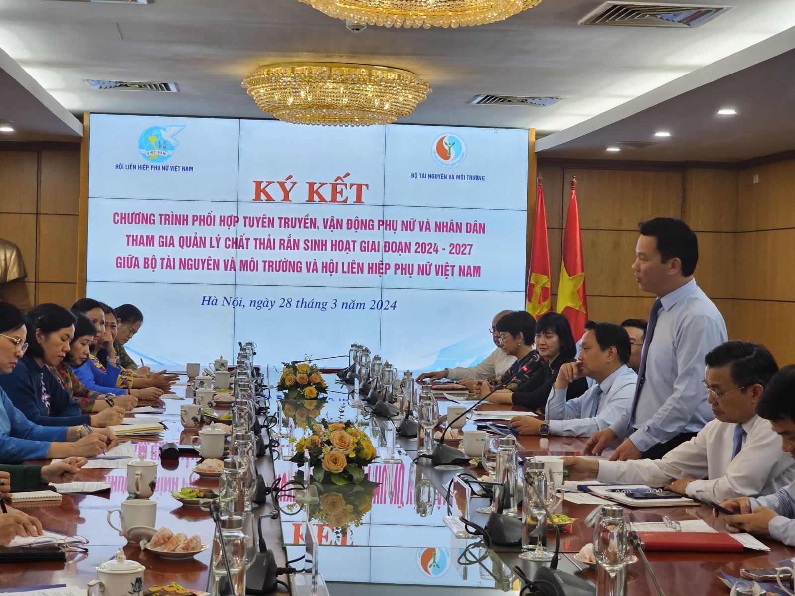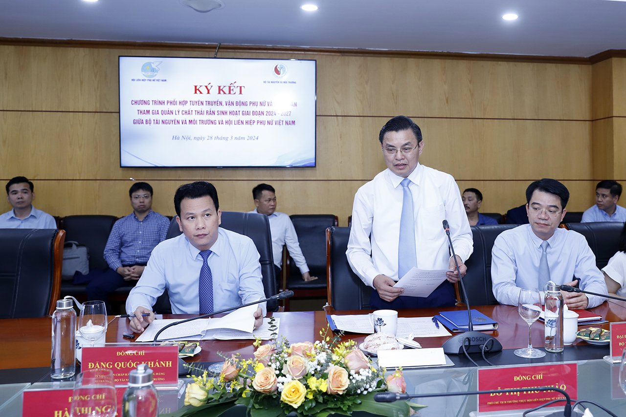 Tại buổi Lễ Ký kết, Bộ trưởng Đặng Quốc Khánh cho biết buổi lễ ký kết giữa Bộ Tài nguyên và Môi trường và Hội Liên hiệp Phụ nữ Việt Nam được diễn ra trong tháng 3 có ý nghĩa hết sức đặc biệt, là dịp kỷ niệm ngày Quốc tế phụ nữ 08/3 và hưởng ứng “Ngày Quốc tế không rác thải” 30/3. Trong những năm qua, với vai trò là tổ chức đại diện cho phụ nữ Việt Nam, Hội LHPN Việt Nam đã luôn quan tâm chỉ đạo, tích cực tuyên truyền, vận động hội viên, phụ nữ tham gia bảo vệ môi trường. Hội LHPN Việt Nam là một trong những tổ chức đi đầu trong các hoạt động bảo vệ môi trường tại cộng đồng, tiêu biểu có thể kể đến các kết quả thiết thực từ các phong trào, cuộc vận động “Xây dựng gia đình 5 không, 3 sạch”; Chương trình mục tiêu quốc gia xây dựng nông thôn mới; phong trào “Chống rác thải nhựa”. Nhiều cách làm hay, mô hình sáng tạo đã được các cấp Hội tích cực triển khai như thu gom, phân loại, xử lý rác thải; tái chế rác thải nhựa… đã và đang góp phần tích cực trong công tác bảo vệ môi trường nói chung và quản lý chất thải rắn sinh hoạt nói riêng; khẳng định vai trò của phụ nữ trong mọi lĩnh vực, trong đó có lĩnh vực bảo vệ môi trường.