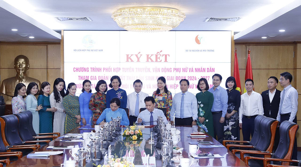 Bộ Tài nguyên và Môi trường và Hội Liên Hiệp Phụ nữ Việt Nam ký kết Chương trình phối hợp tuyên truyền, vận động phụ nữ và nhân dân tham gia quản lý chất thải rắn sinh hoạt giai đoạn 2024 - 2027