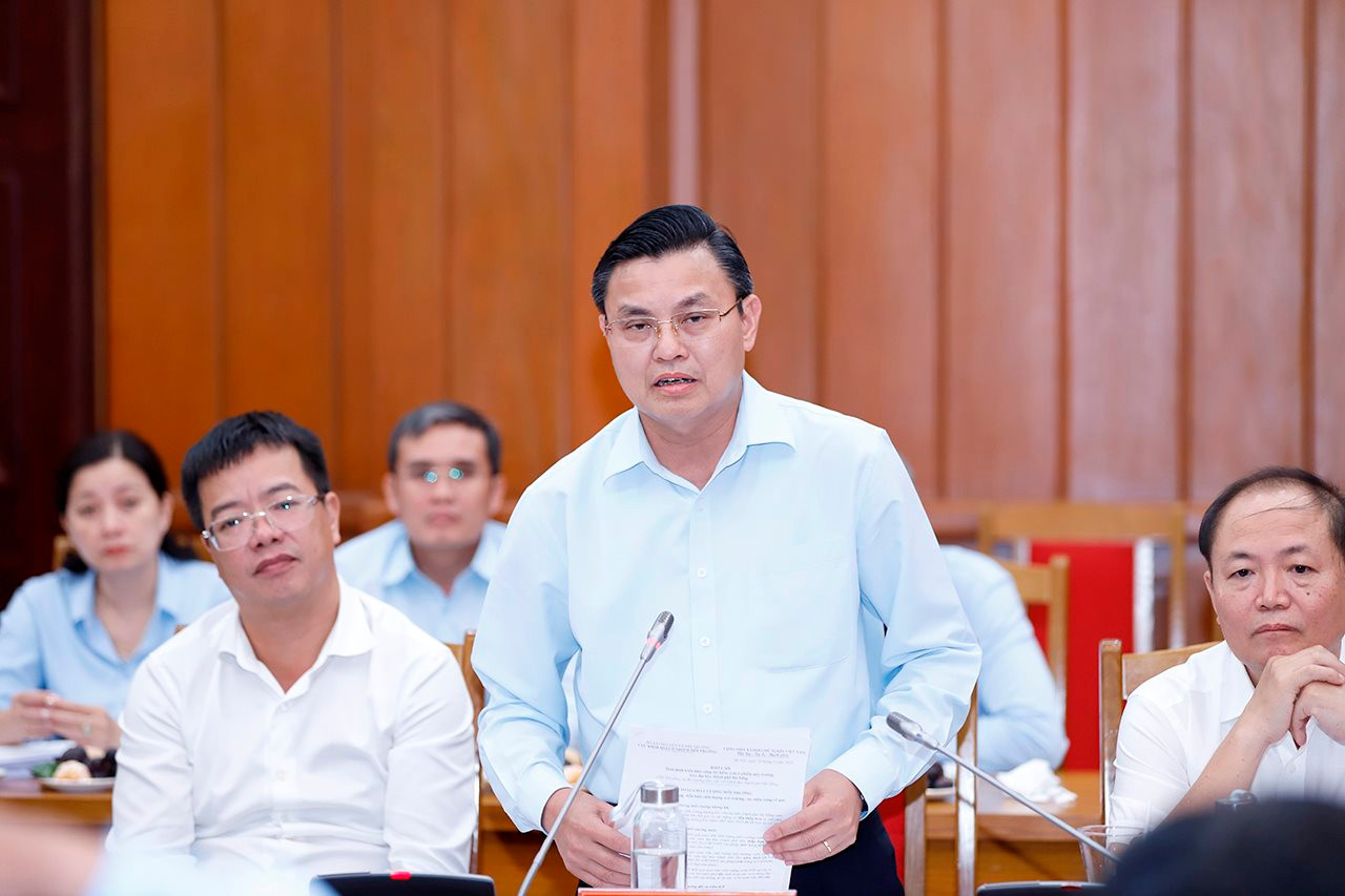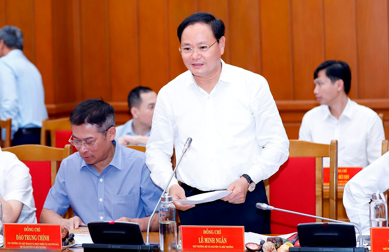 Thứ trưởng Bộ Tài nguyên và Môi trường Lê Minh Ngân phát biểu tại buổi làm việc