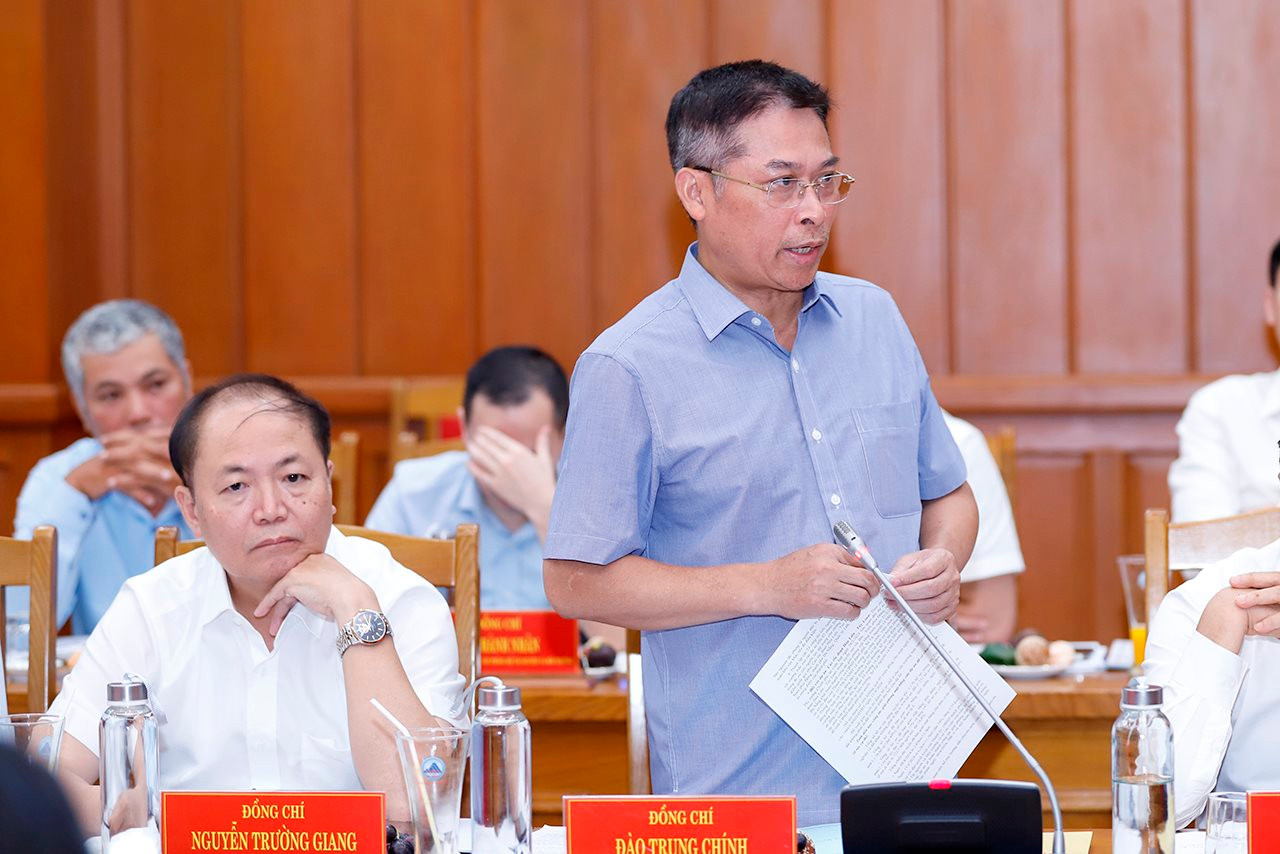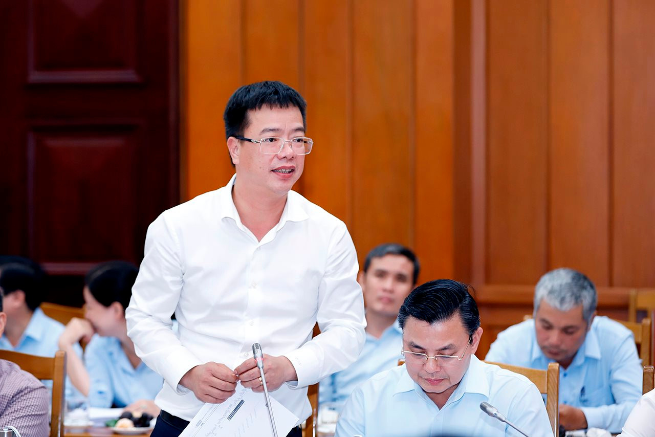Ông Phạm Nam Sơn, Giám đốc Sở Tài nguyên và Môi trường báo cáo tại cuộc làm việc