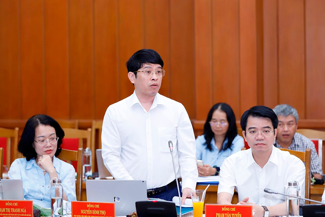 Lãnh đạo các đơn vị Bộ Tài nguyên và Môi trường phát biểu tại buổi làm việc