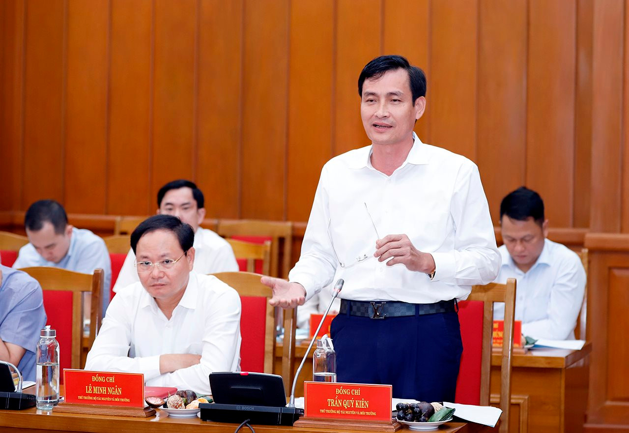 Thứ trưởng Bộ Tài nguyên và Môi trường Trần Quý Kiên phát biểu tại buổi làm việc