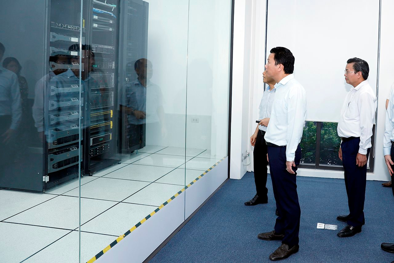 Một số hình ảnh tham quan Trung tâm tích hợp, xử lý thông tin, dữ liệu và điều hành mạng lưới quan trắc môi trường quốc gia của Bộ trưởng Đặng Quốc Khánh và các đại biểu: